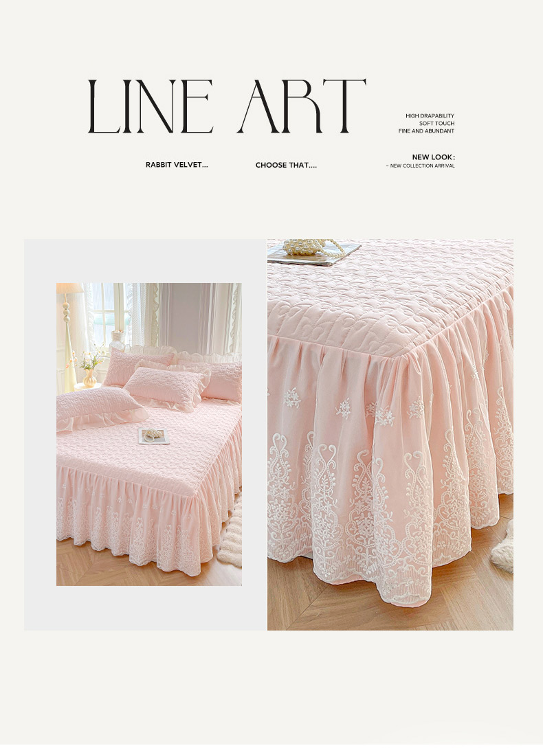 予梦家纺 2025新款公主风蕾丝花边夹棉床裙 洛可可-粉