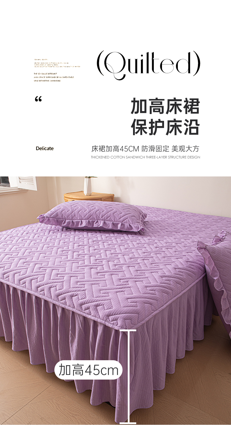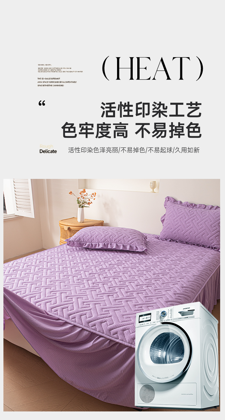 (总)屹成家纺 2024新款天竺棉夹棉床裙,玳瑁紫,典雅驼,豆沙,格调蓝,经典灰,孔雀绿