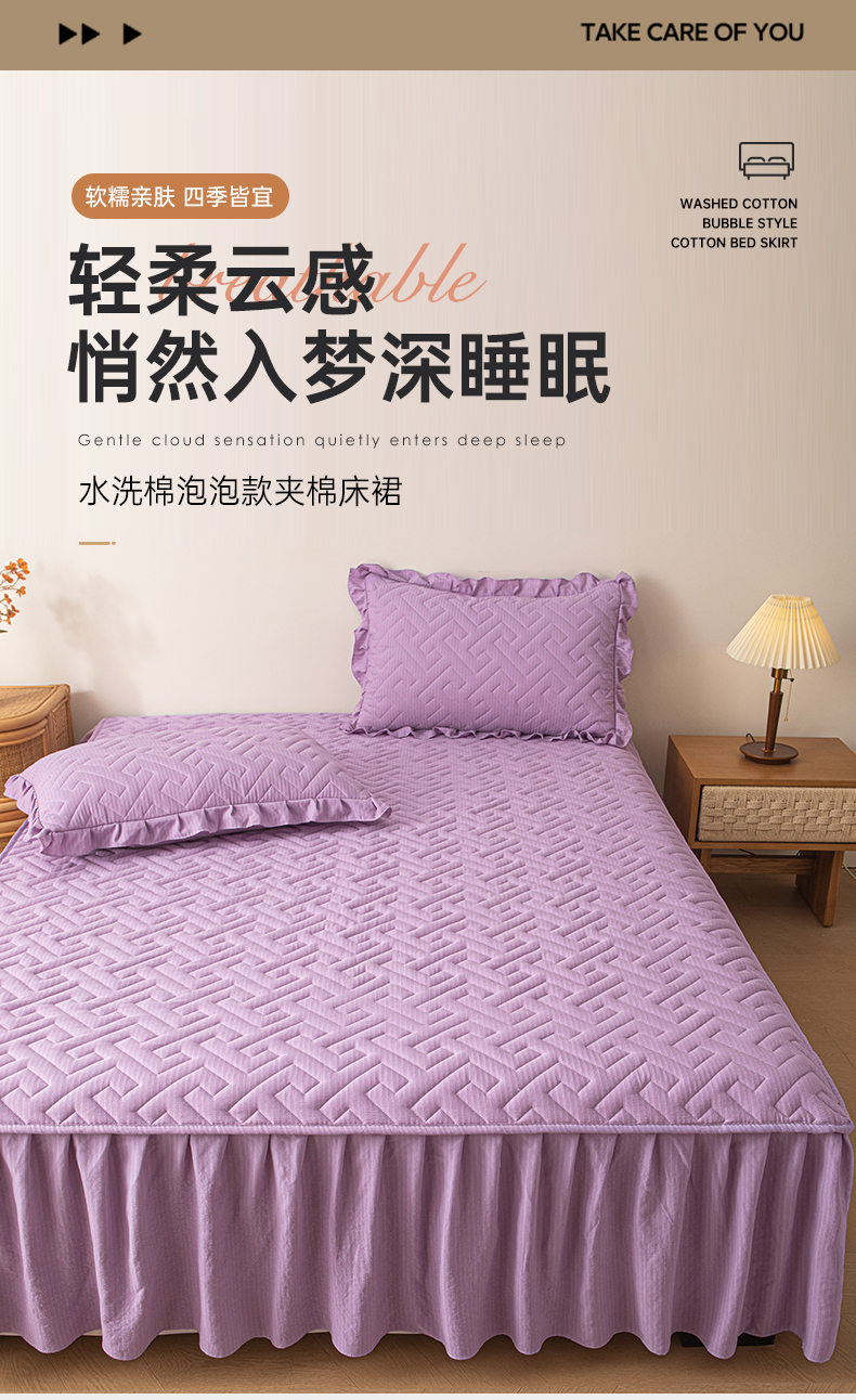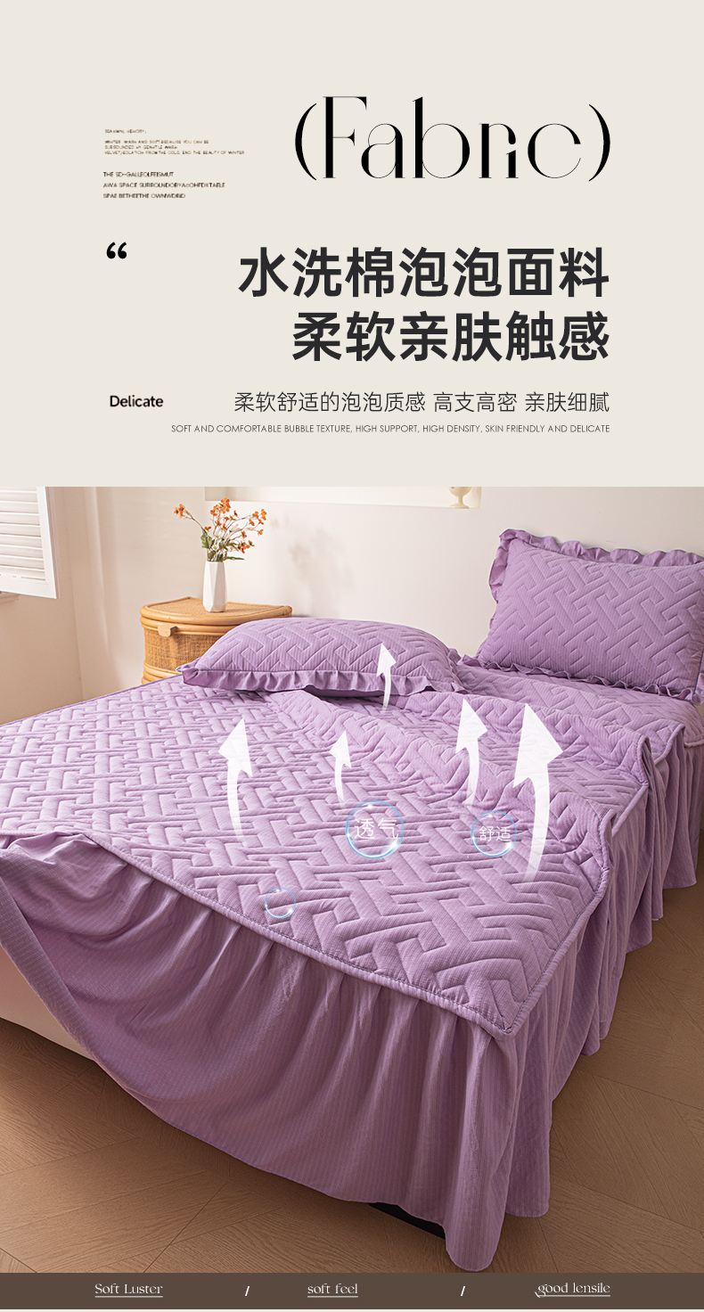 屹成家纺 2025新款水洗泡泡棉床裙三件套 雪青