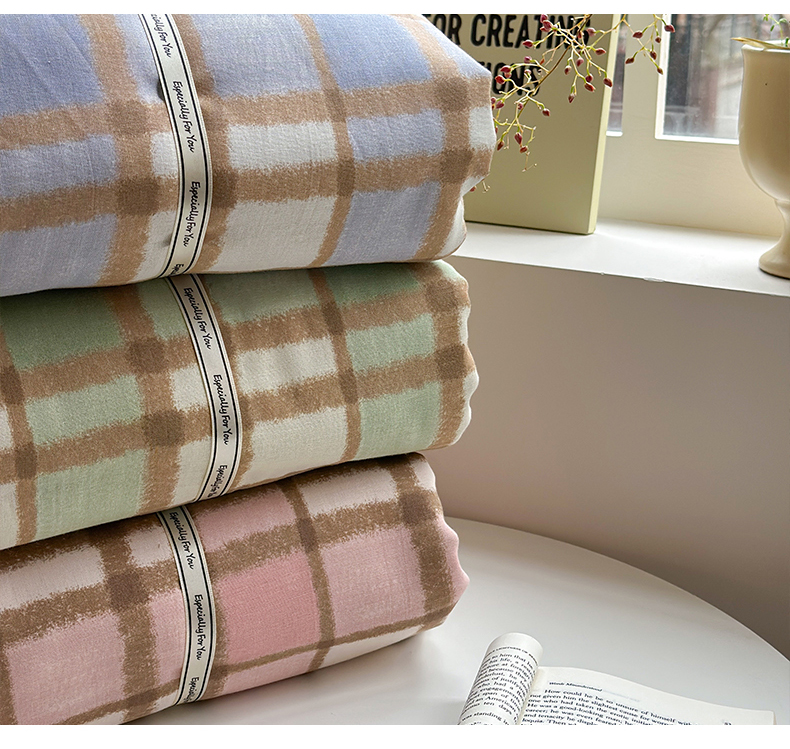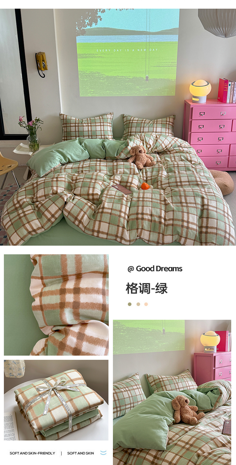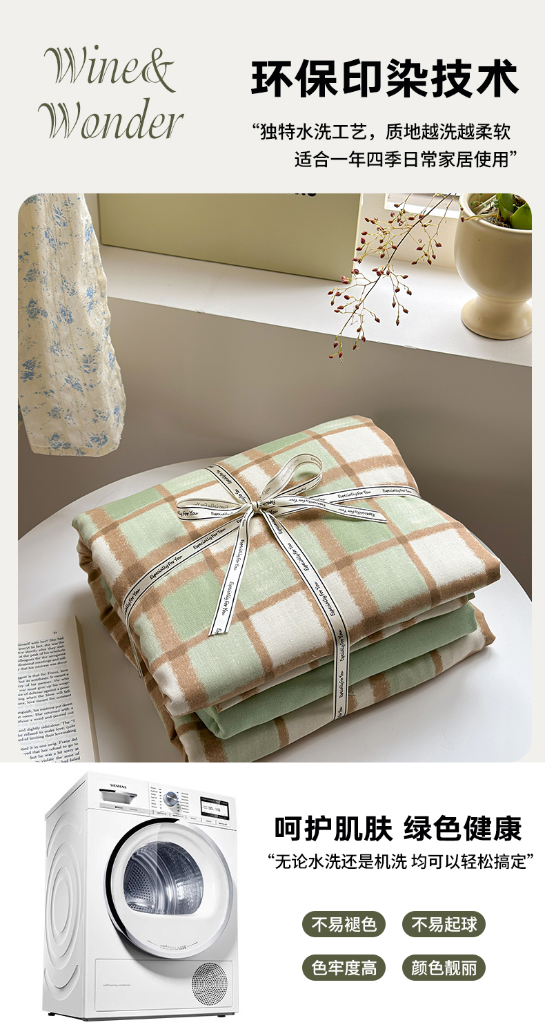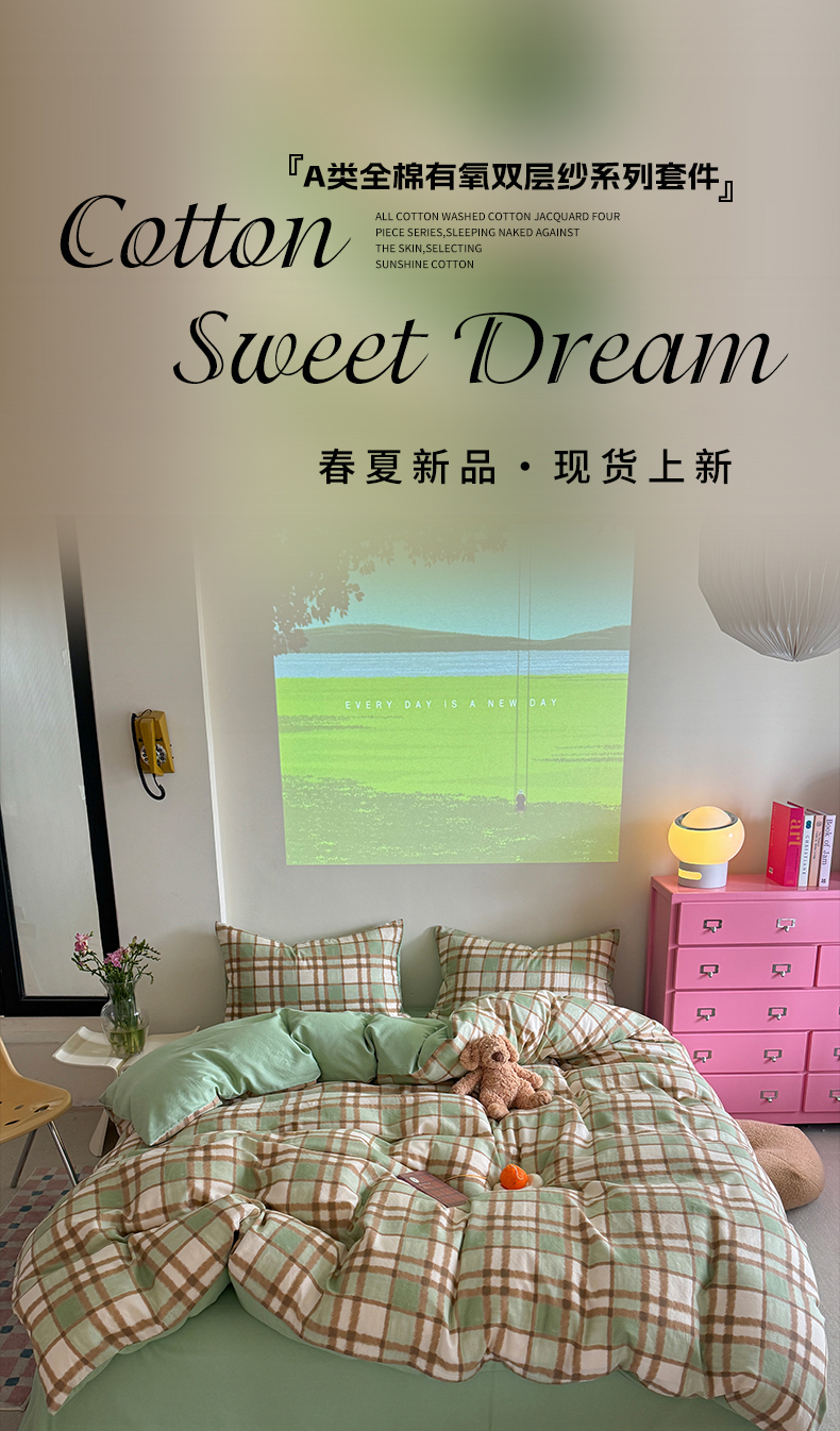商品名称:2025新款全棉有氧双层纱四件套-简约系列 格调-绿