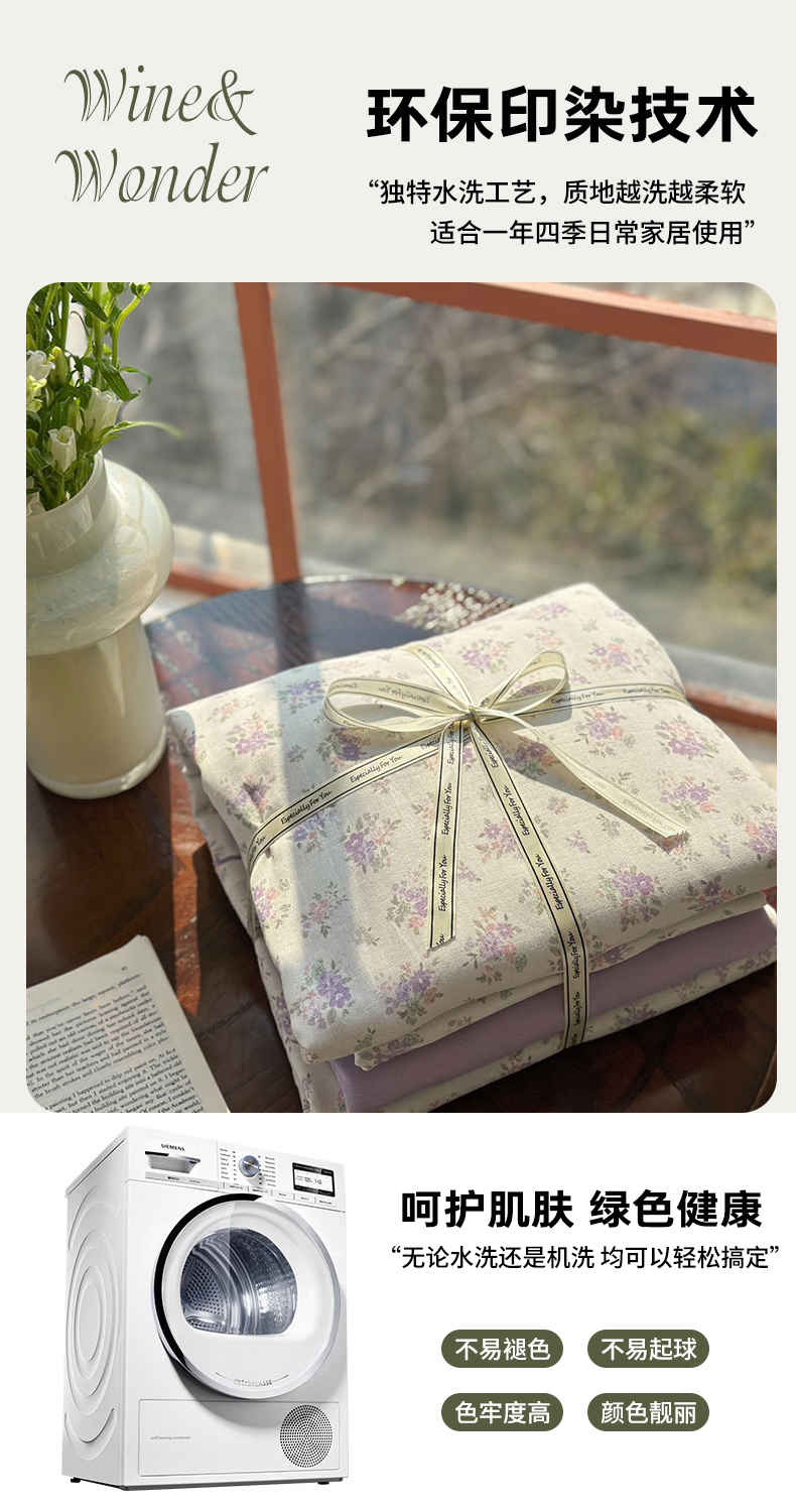 2025新款全棉有氧双层纱四件套-碎花系列 潇潇暮雨