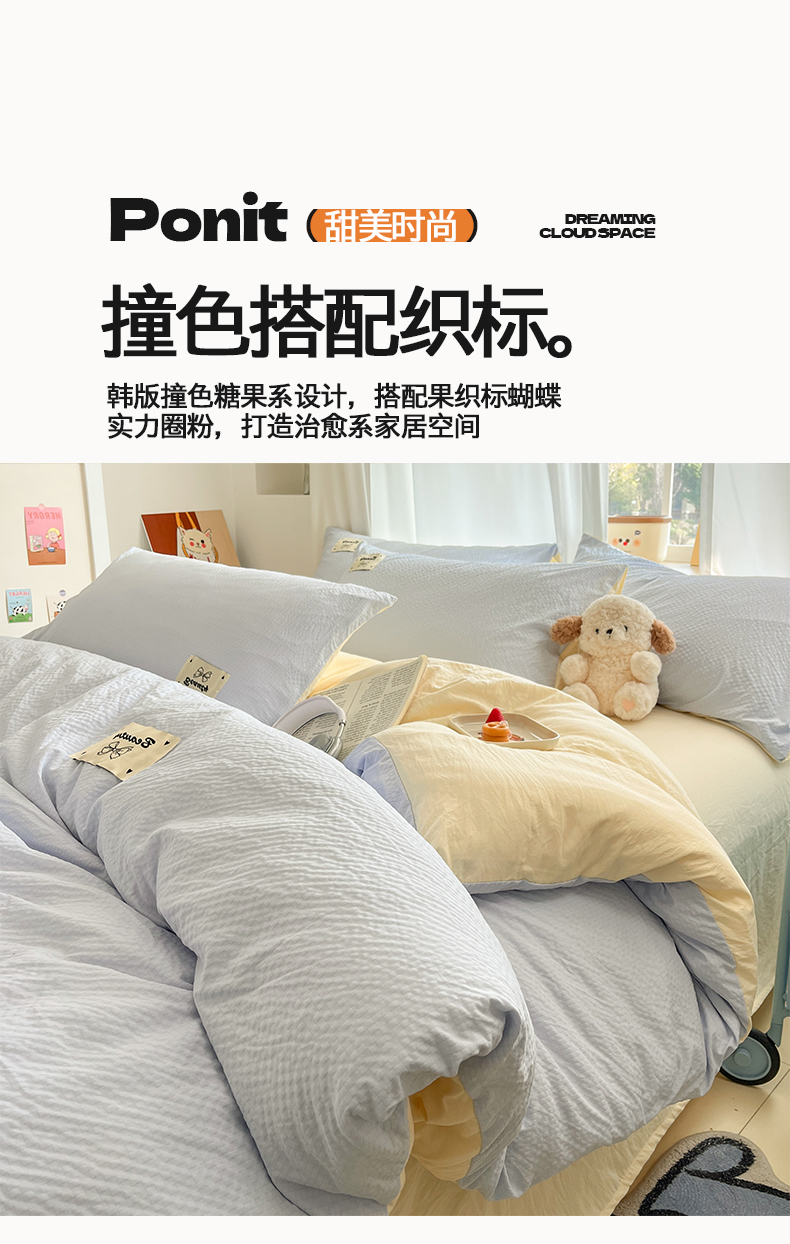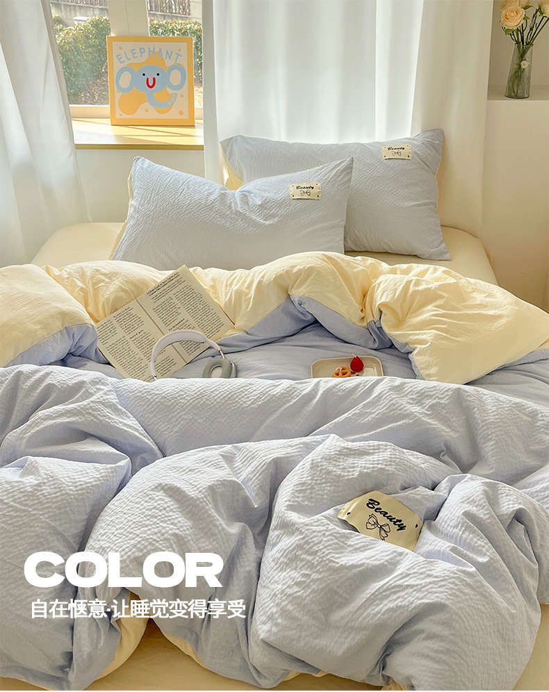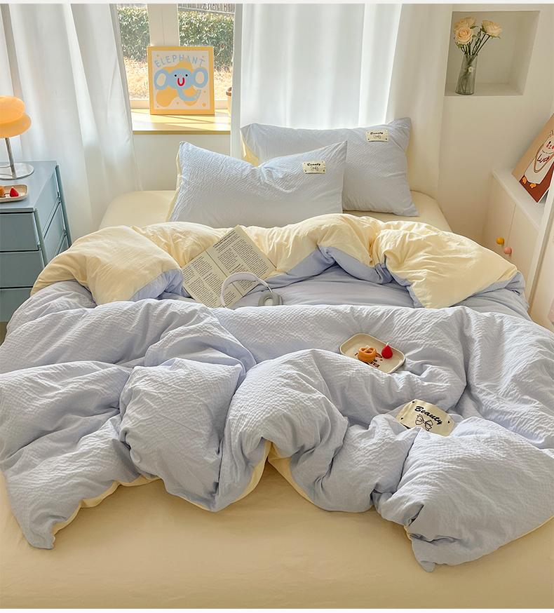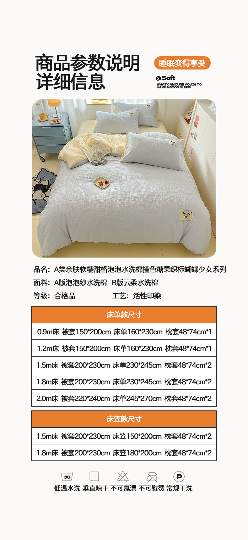 当前位置: 91家纺网 > 商品网购 > 床品套件 > 四件套 > 水洗棉四件套 > 桃心家居 2025新款A类韩系亲肤软糯甜格泡泡水洗棉撞色奶呼呼织标蝴蝶少女四件套 泡泡水洗棉-A甜格蓝黄