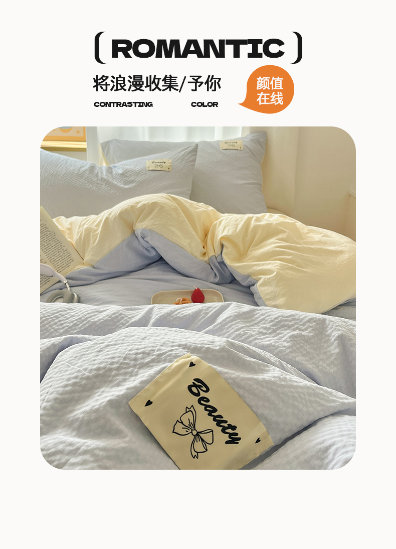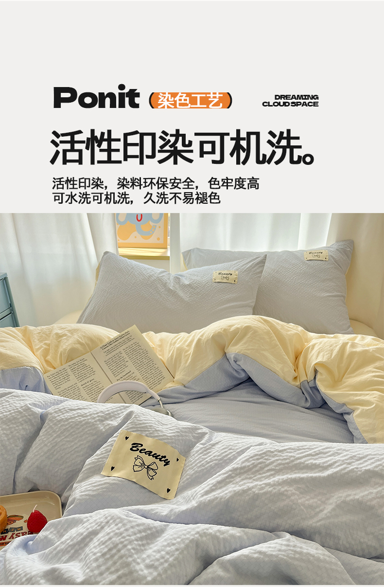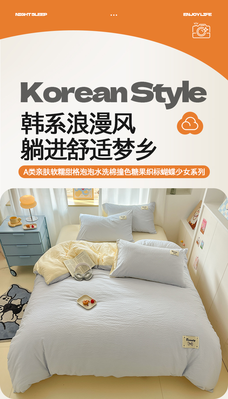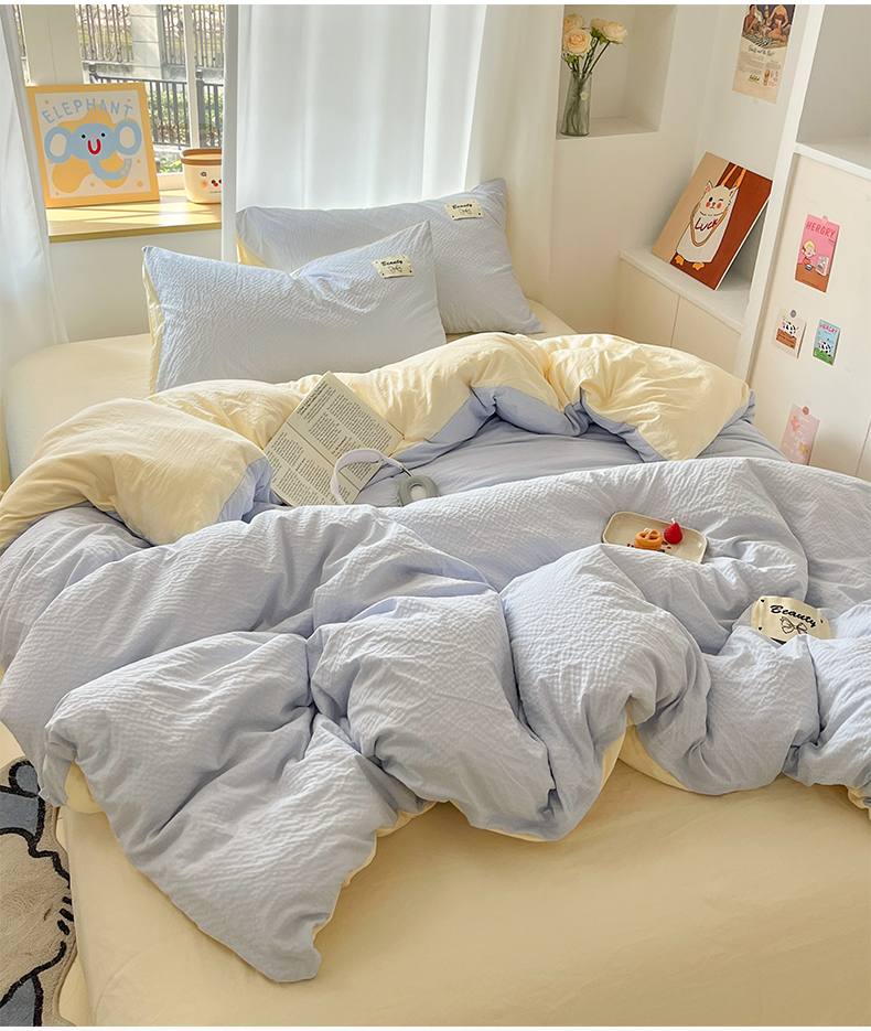 当前位置: 91家纺网 > 商品网购 > 床品套件 > 四件套 > 水洗棉四件套 > 桃心家居 2025新款A类韩系亲肤软糯甜格泡泡水洗棉撞色奶呼呼织标蝴蝶少女四件套 泡泡水洗棉-A甜格蓝黄