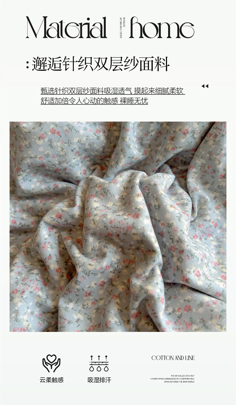 商品名称:葡萄家 2025爆款高克重彩色三角针A类针织双层纱四件套 提供买家秀 三寻