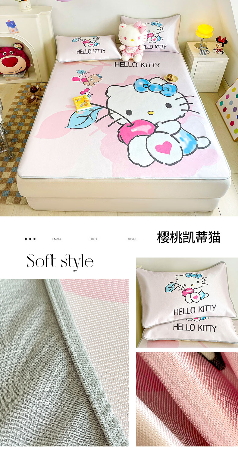 米帛家纺 2025新款 A类大版三丽鸥冰藤席-床笠款 樱桃凯蒂猫
