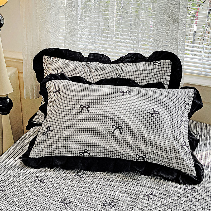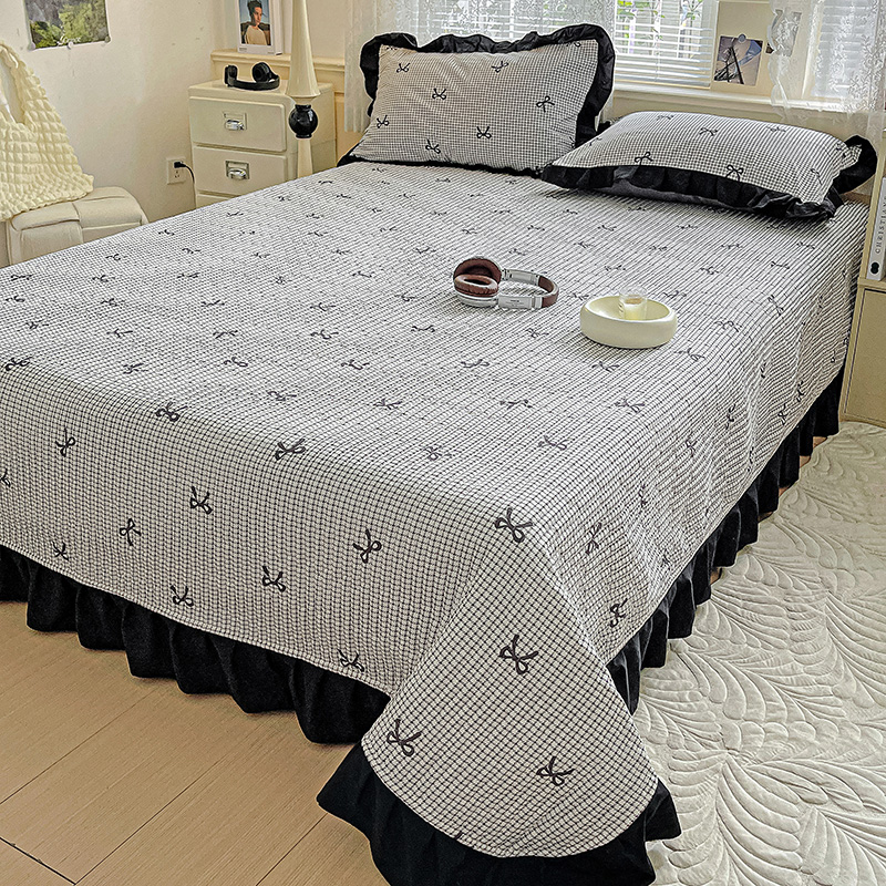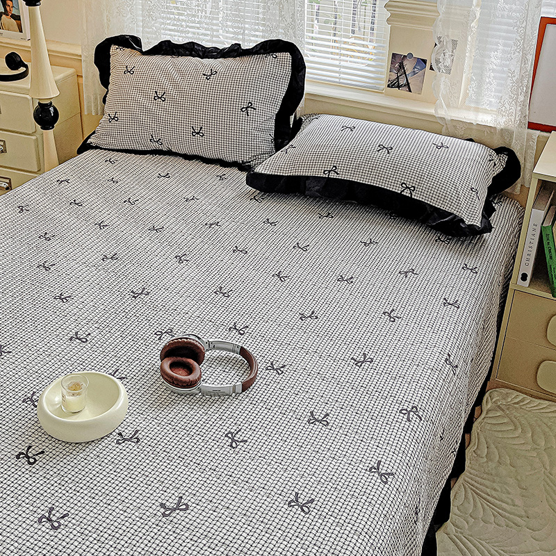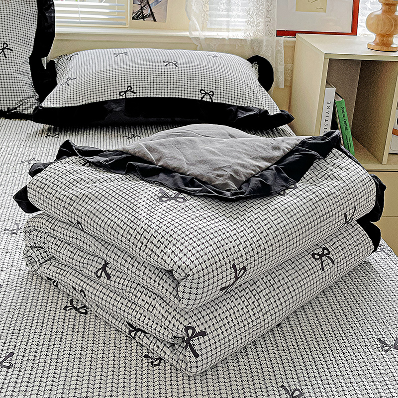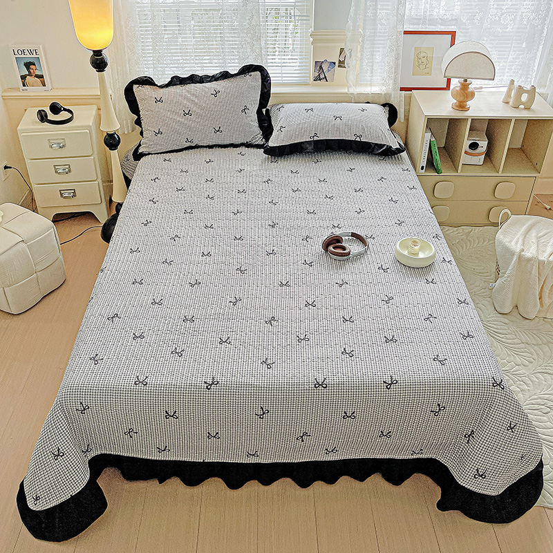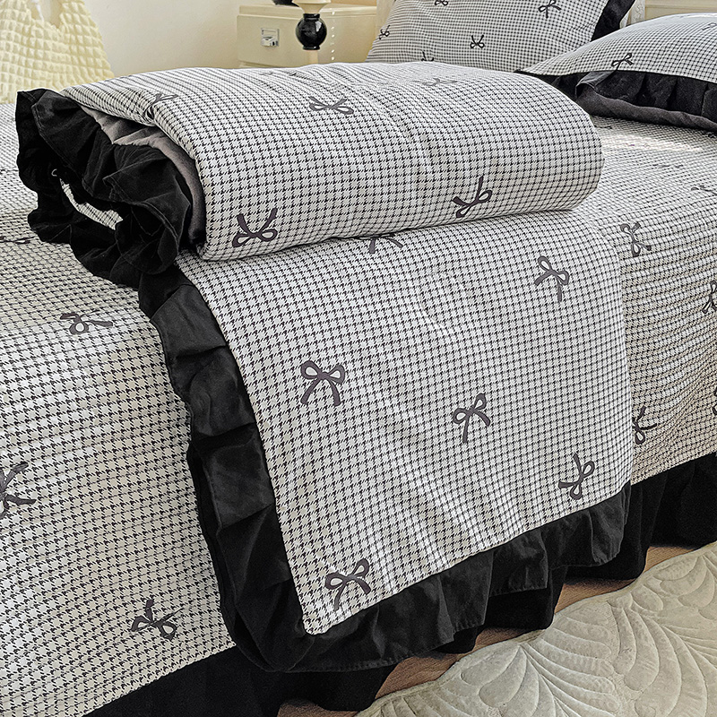 商品名称:米莱家纺 2025新款A类赫本风针织双层纱夏被床盖四件套 蝴蝶结