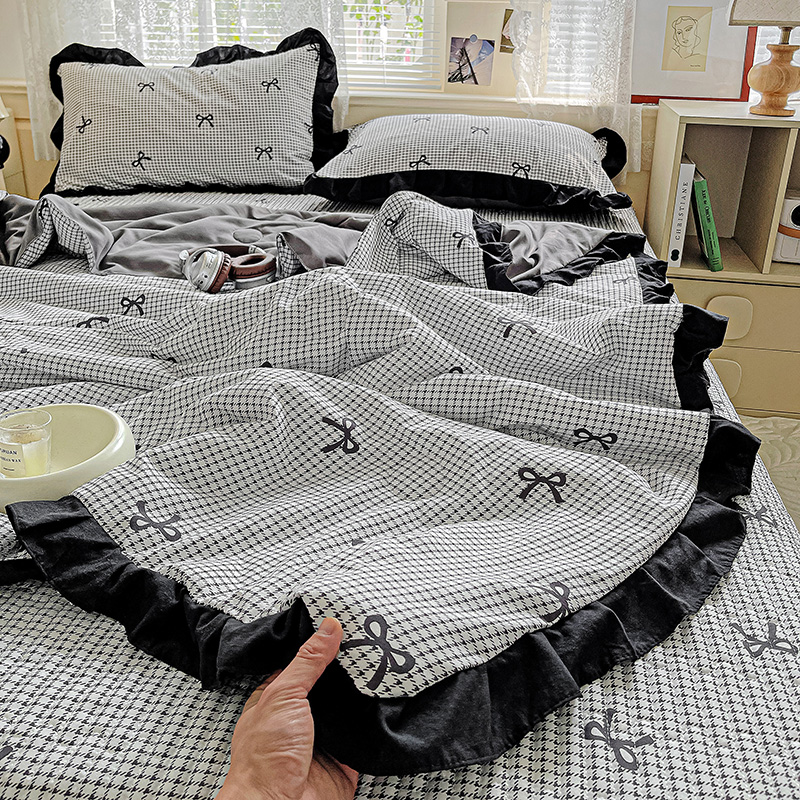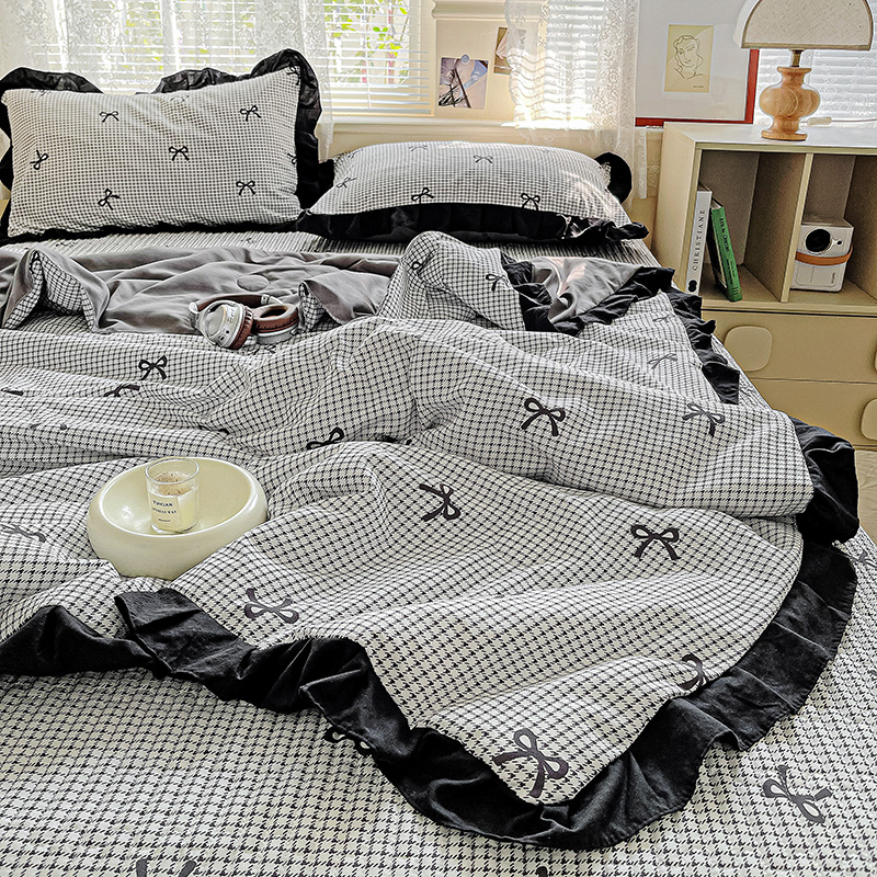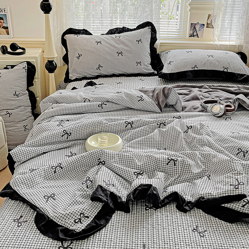 米莱家纺 2025新款A类赫本风针织双层纱夏被床盖四件套 蝴蝶结