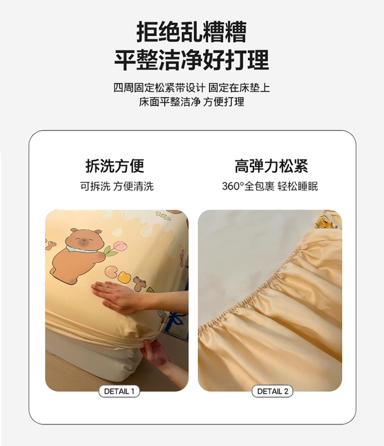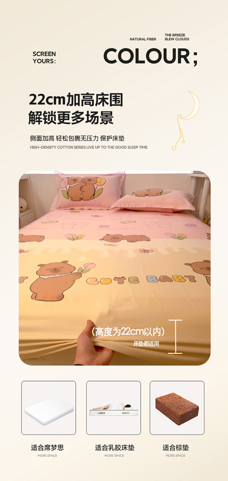 商品名称:浩诚2025新款卡皮巴拉原创IP全棉大版单床笠单枕套-有作品登记证书 幸运巴拉