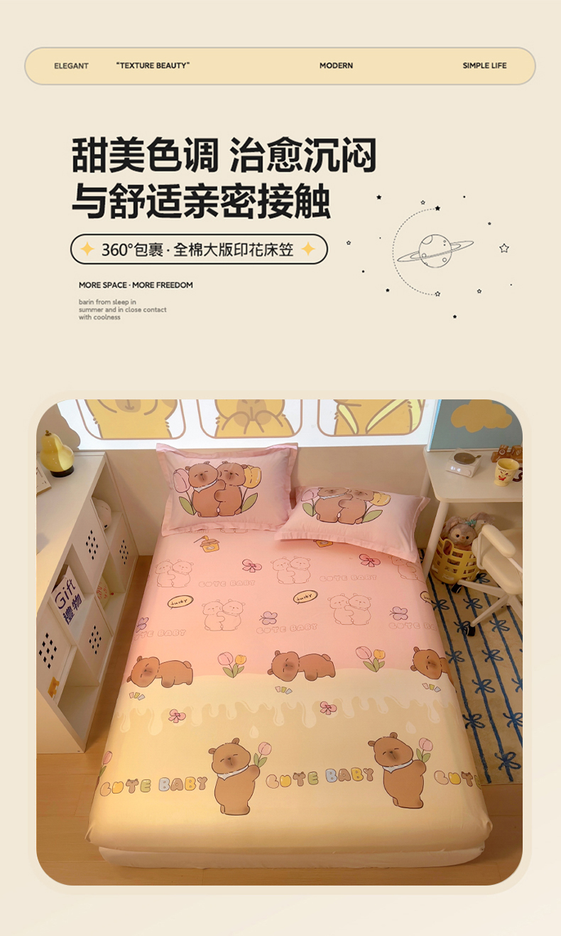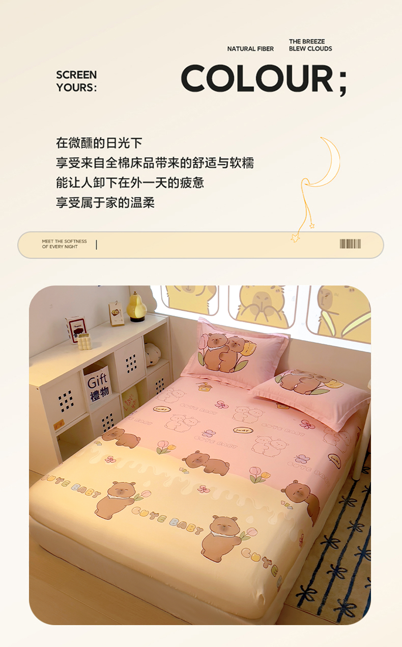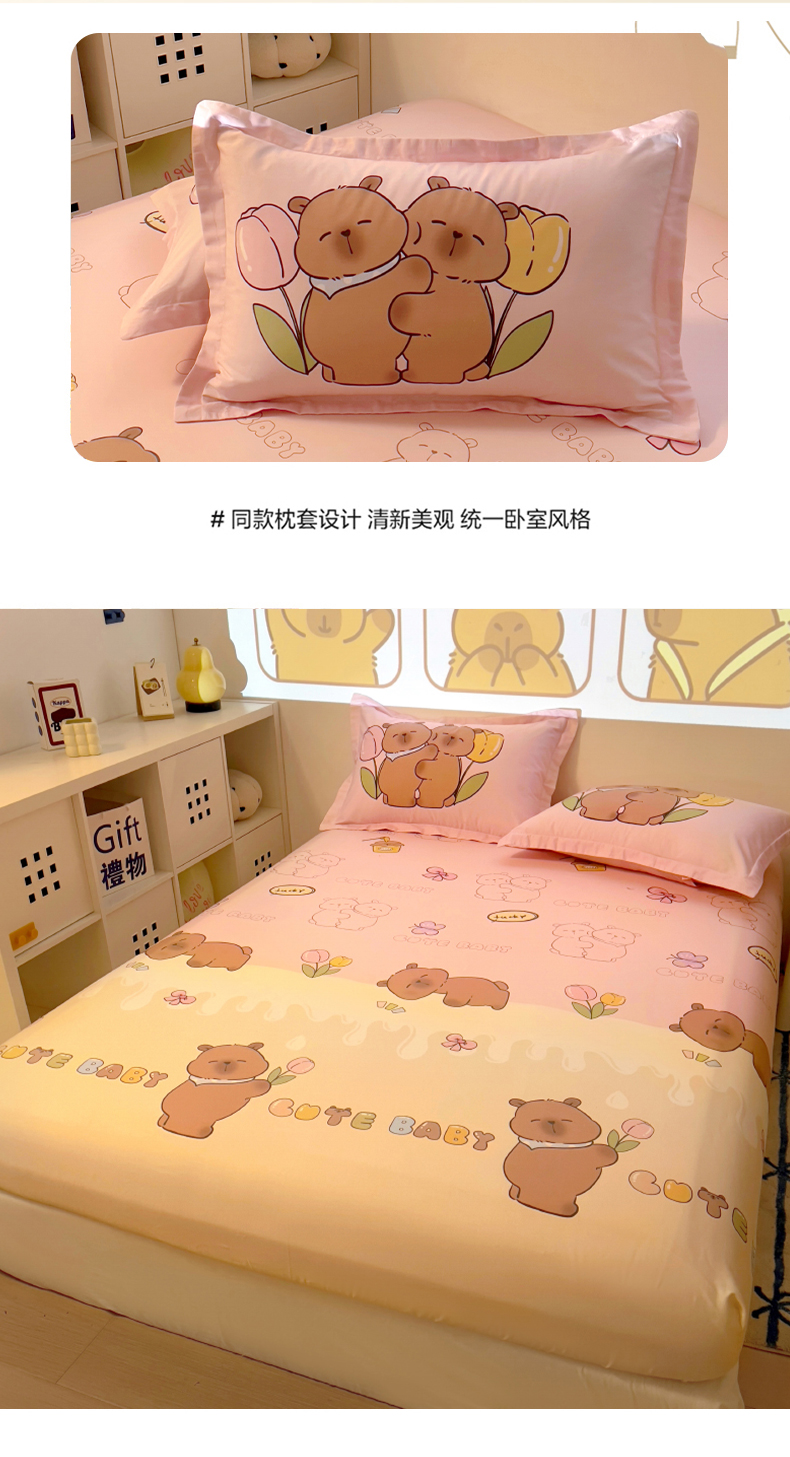 浩诚2025新款卡皮巴拉原创IP全棉大版单床笠单枕套-有作品登记证书 幸运巴拉