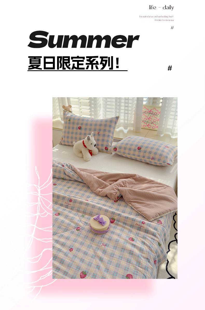 (总)贝扬思 2025新款Lolita毛巾绣夏被套件 ,草莓布偶猫,脆梨曲奇熊,蓝莓布偶猫,糯米熊猫团,小狗脆啵啵,小熊布朗尼