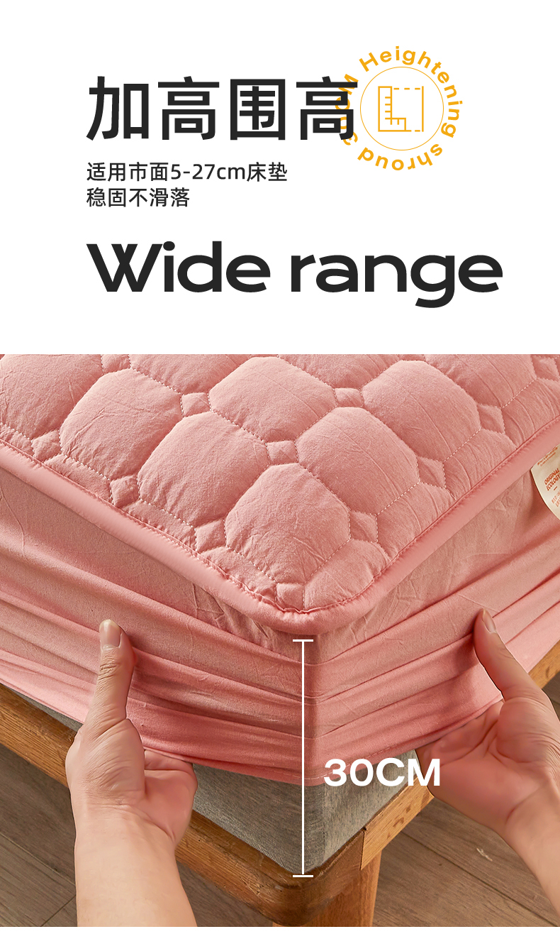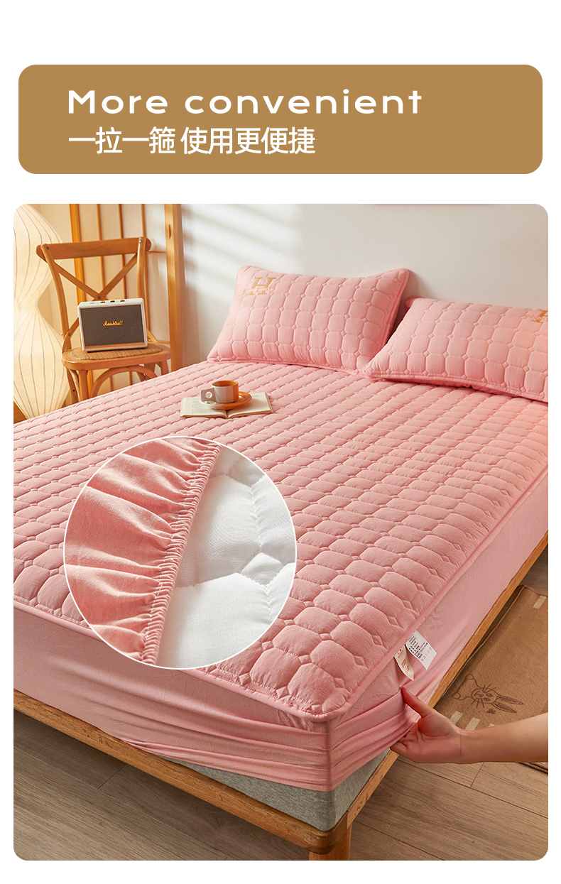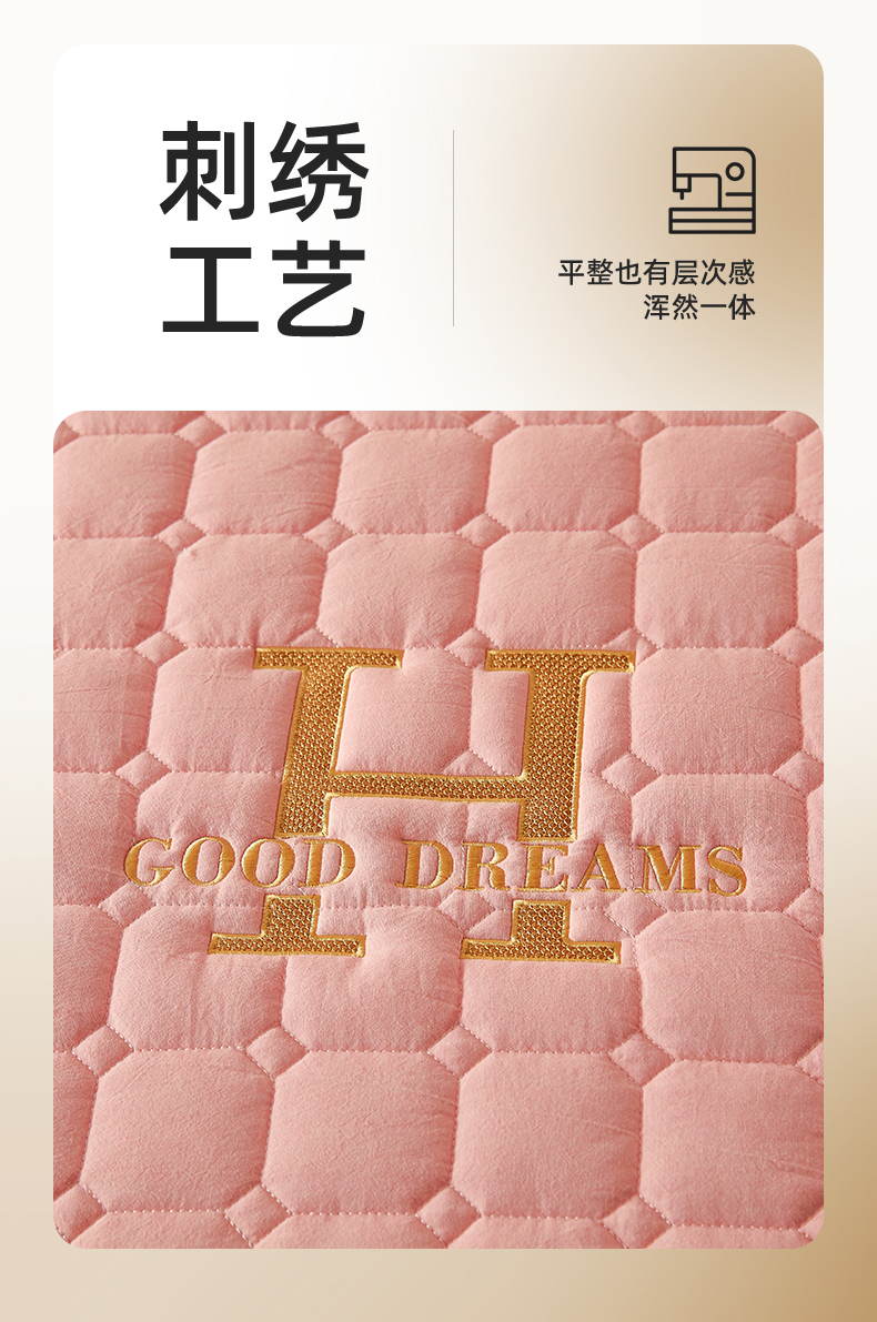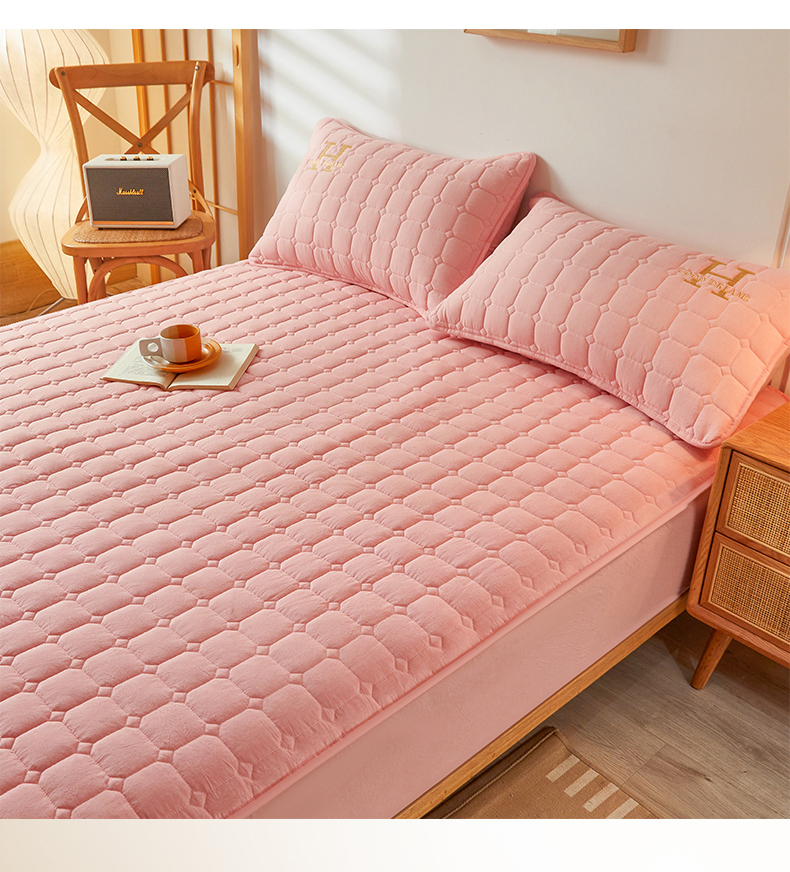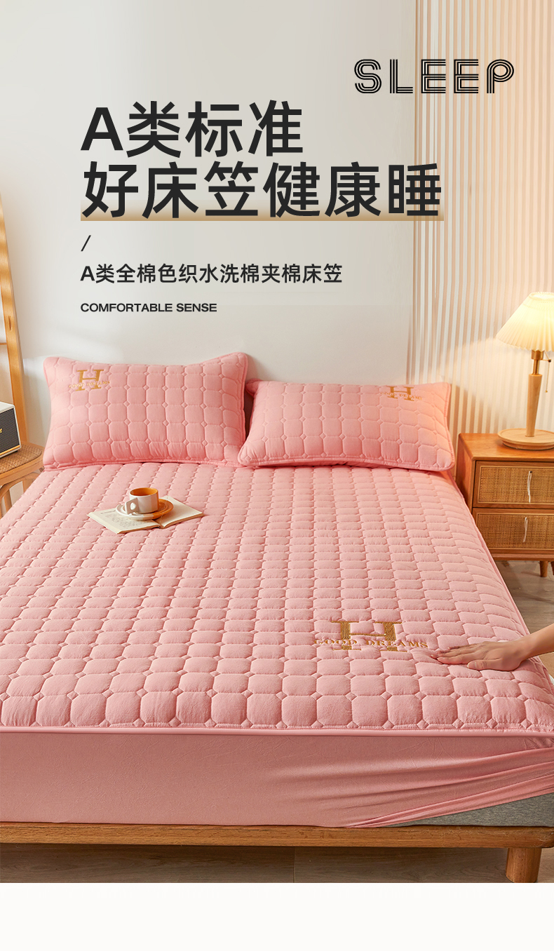 恒爱家纺 2025新款H系列全棉色织水洗棉床笠 粉玉