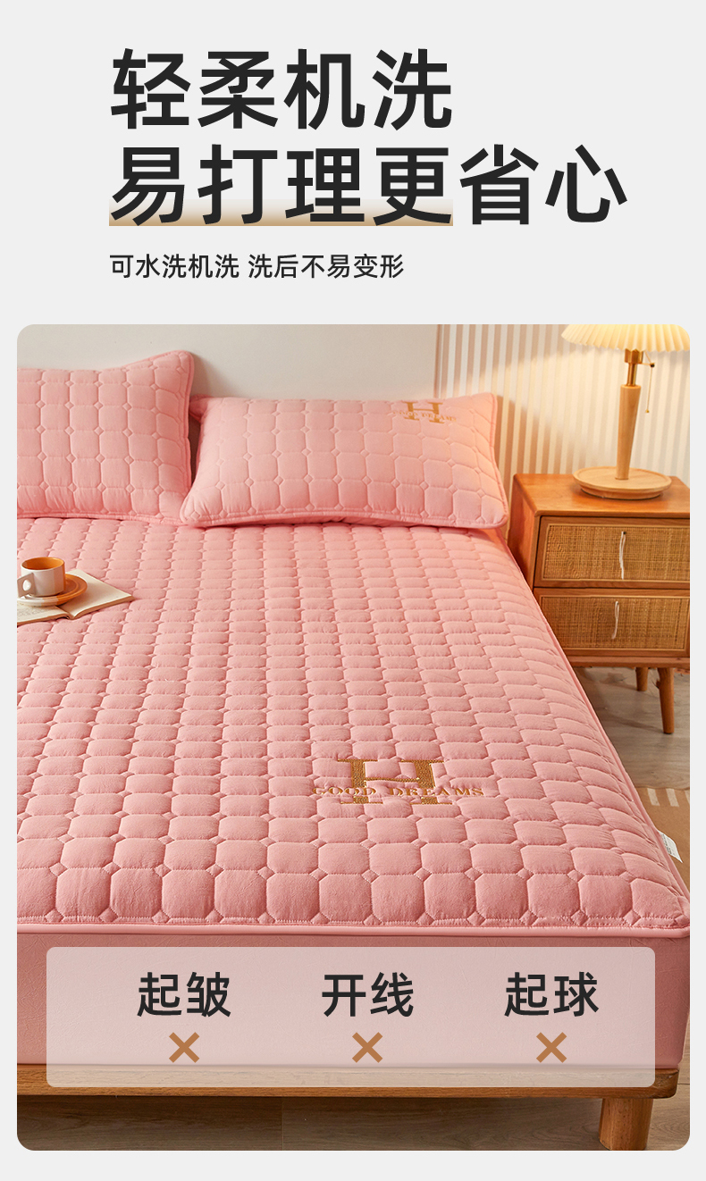 商品名称:恒爱家纺 2025新款H系列全棉色织水洗棉床笠 粉玉