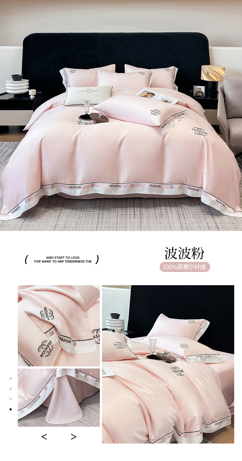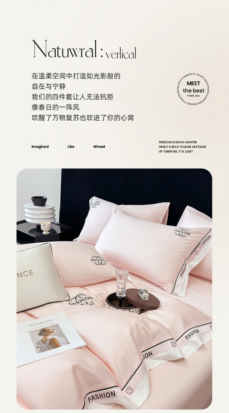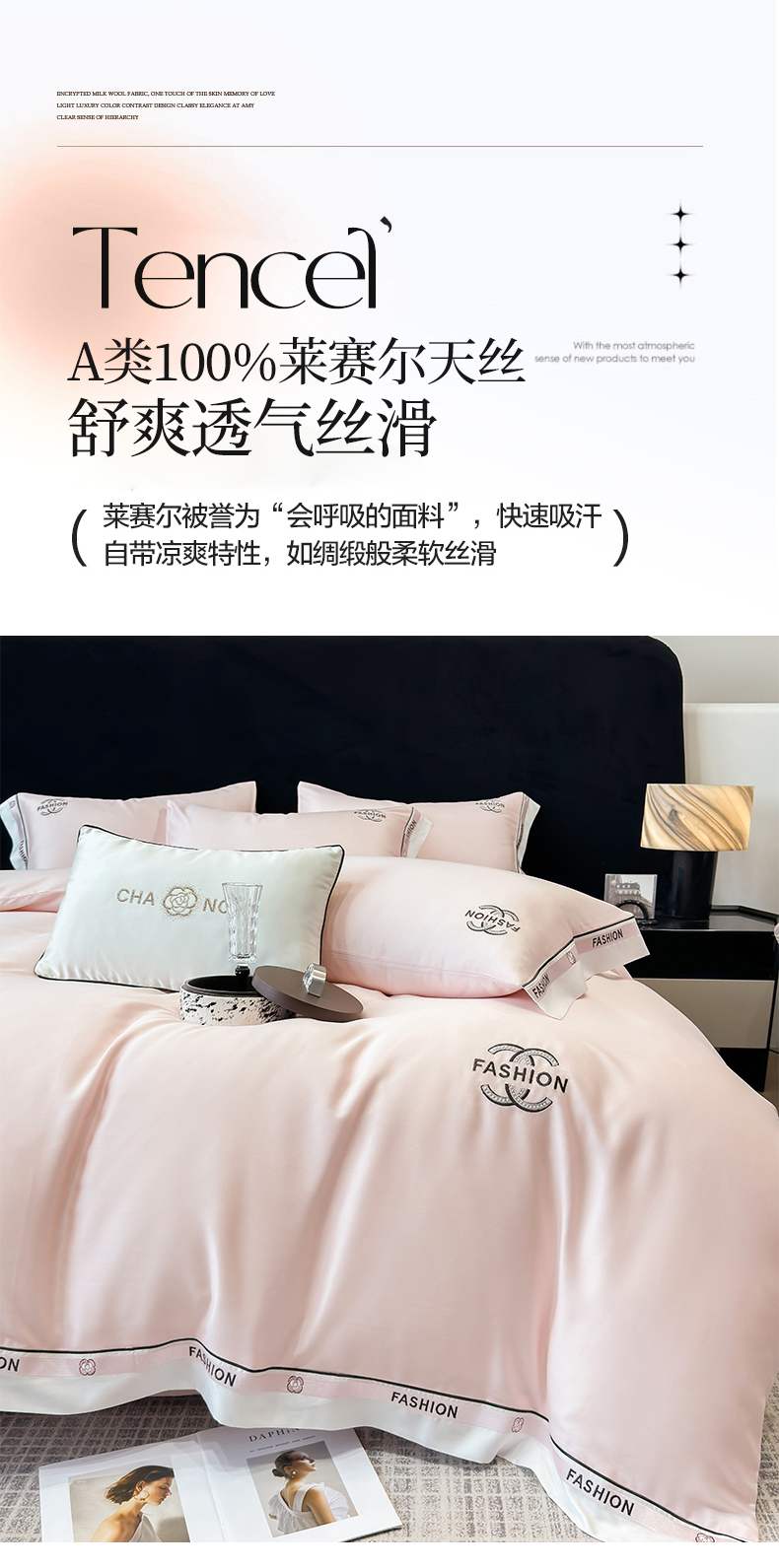 (总)黄鹂鸟 2025新款A类100%莱赛尔天丝刺绣四件套-香奈系列【高档礼盒包装可提供买家秀 】