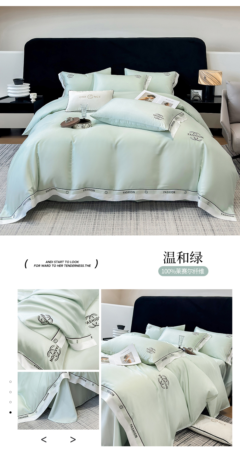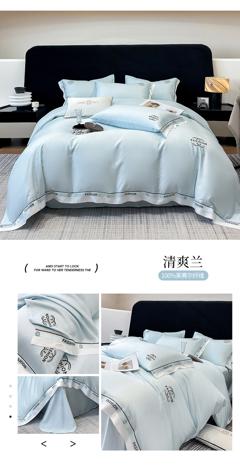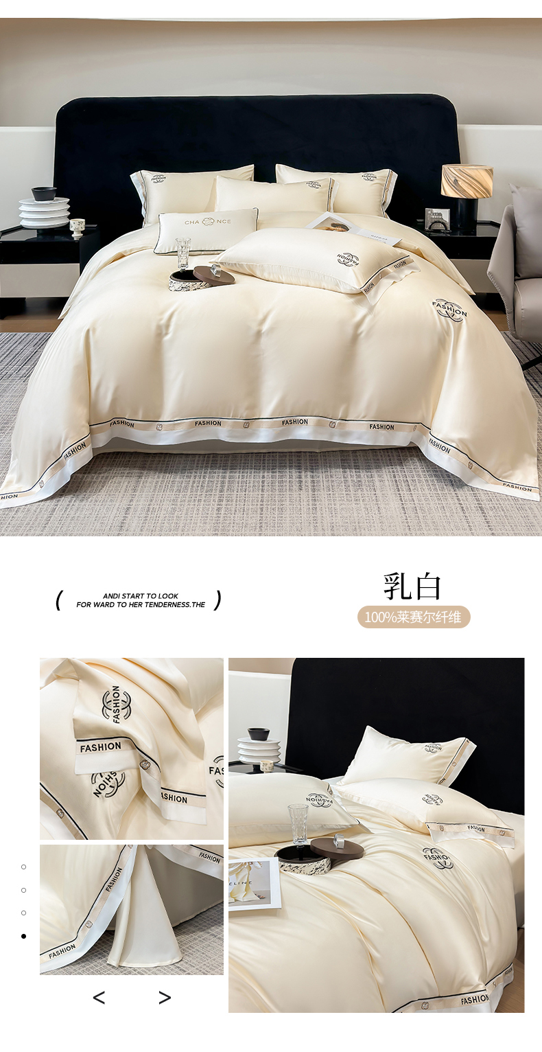 商品名称:(总)黄鹂鸟 2025新款A类100%莱赛尔天丝刺绣四件套-香奈系列【高档礼盒包装可提供买家秀 】