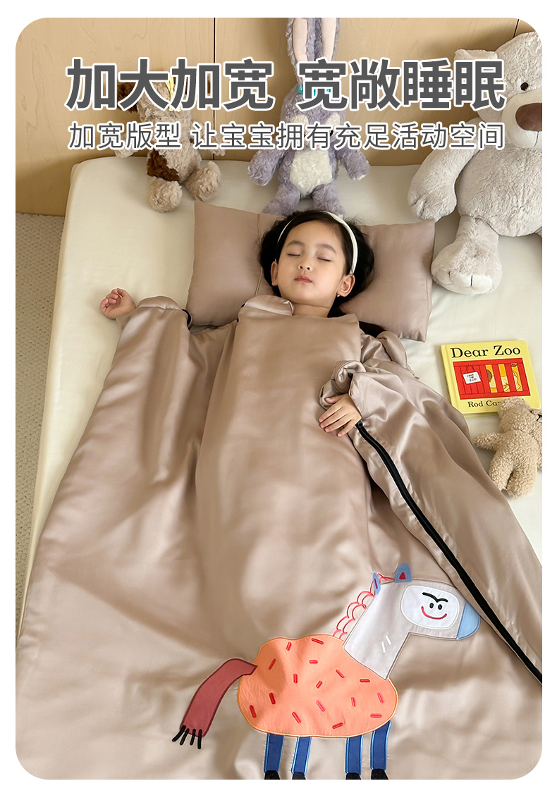 当前位置: 91家纺网 > 商品网购 > 婴童用品 > 婴童睡袋/防踢被 > 喜多兔儿童家纺 2025新款60S兰精天丝睡袋防踢被 卡其色勤劳小马
