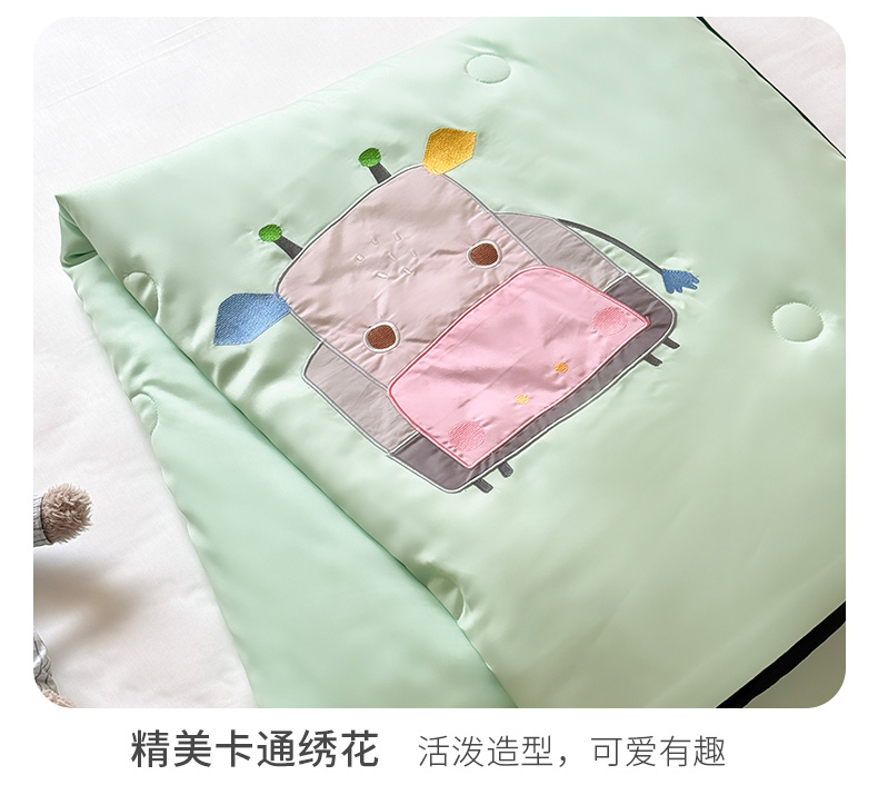 (总)喜多兔儿童家纺 2025新款小惊喜儿童蚕丝蛋白天丝抗菌夏凉被,粉色礼貌小鸭,粉色围裙小兔宝,黄色多彩小狗,黄色画画小猫,灰蓝色活动熊猫,灰蓝色运动小狮子,卡其色勤劳小马,卡其色围兜小熊,绿色萌萌恐龙,绿色微笑小猴