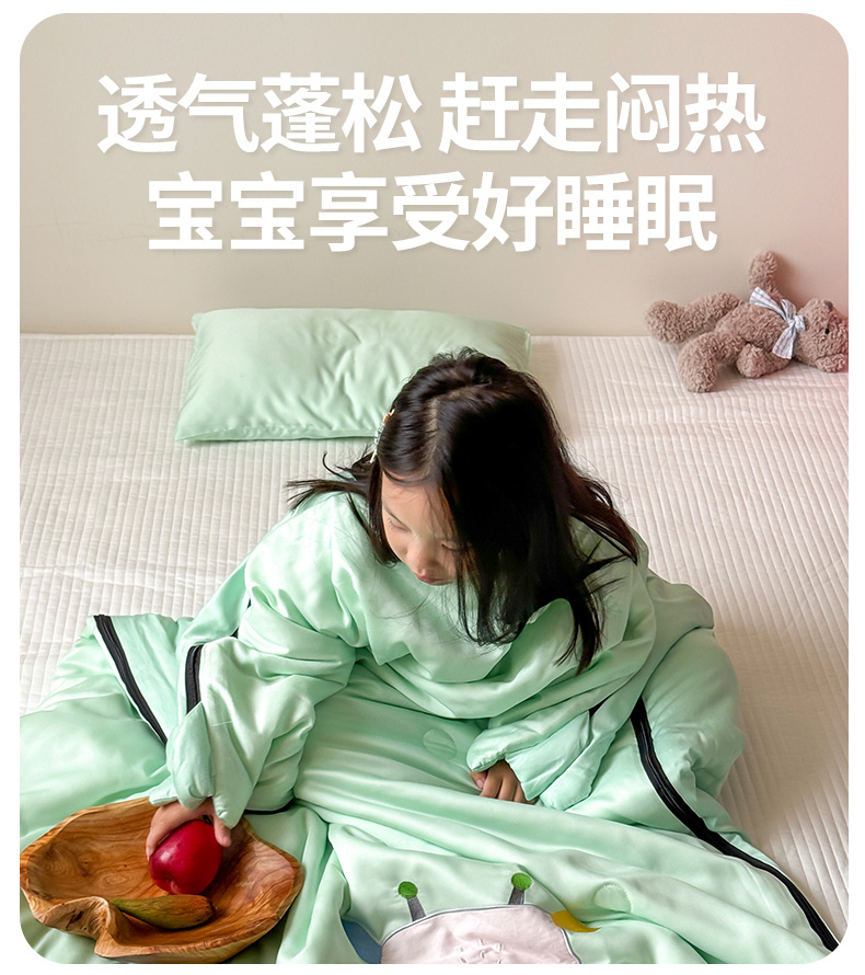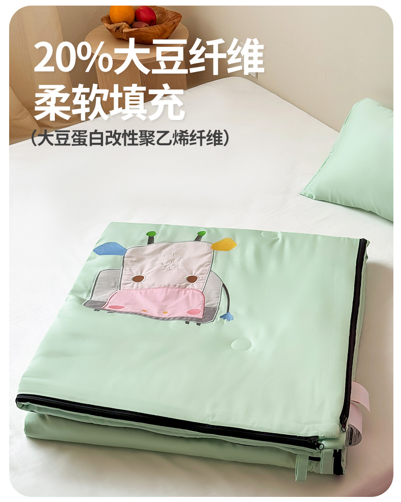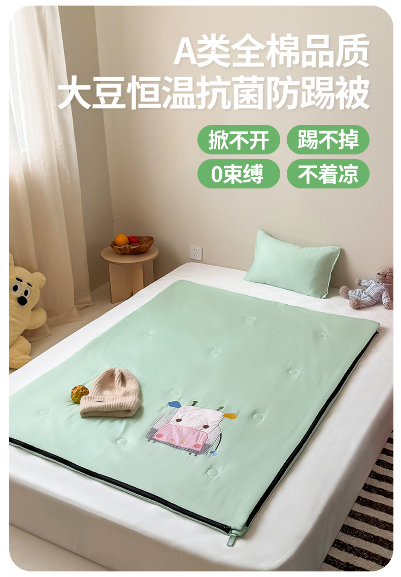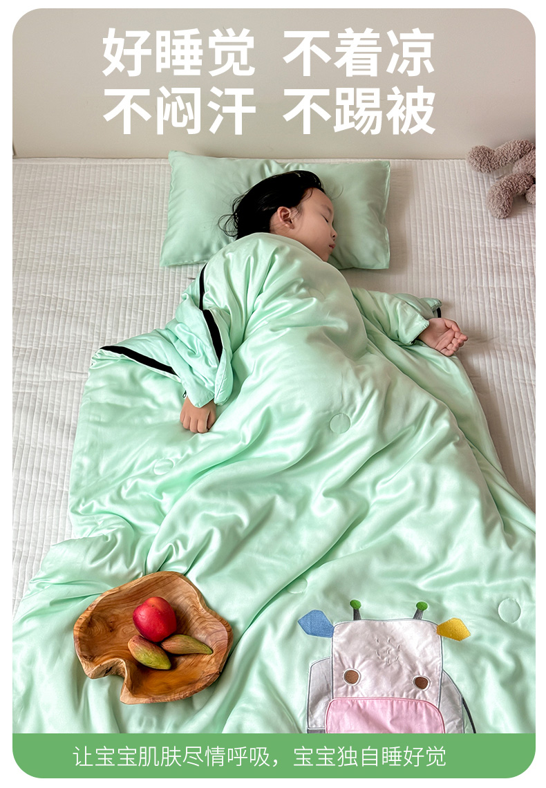 商品名称:喜多兔儿童家纺 2025新款萌宝系列40S纯棉夏季睡袋防踢被 绿色小牛宝宝