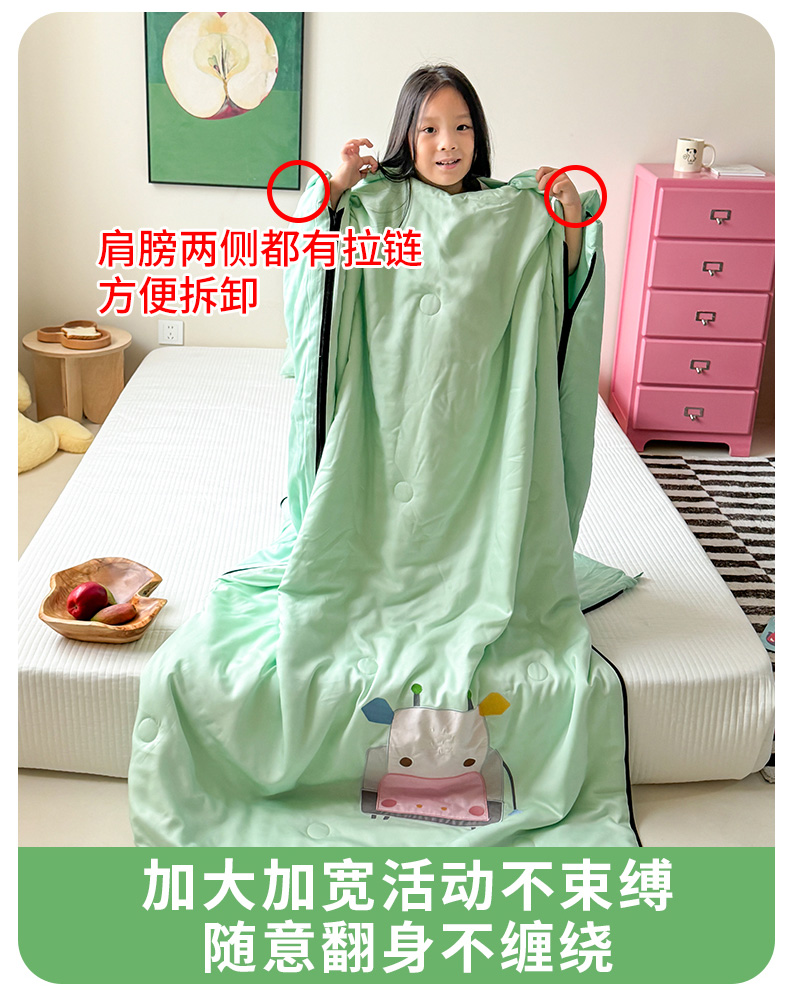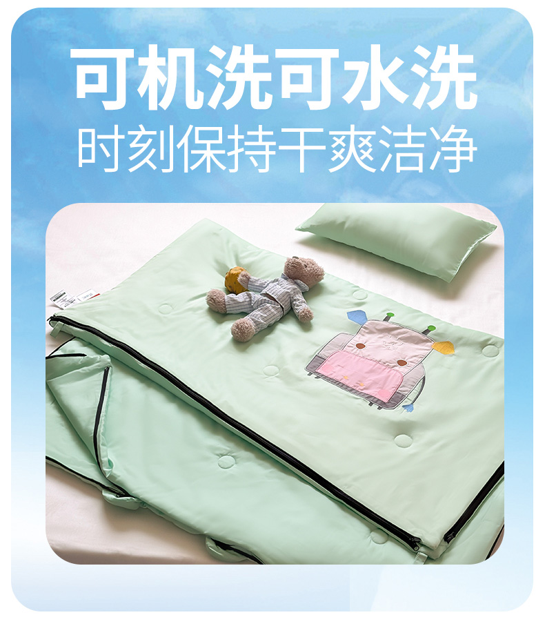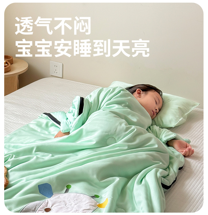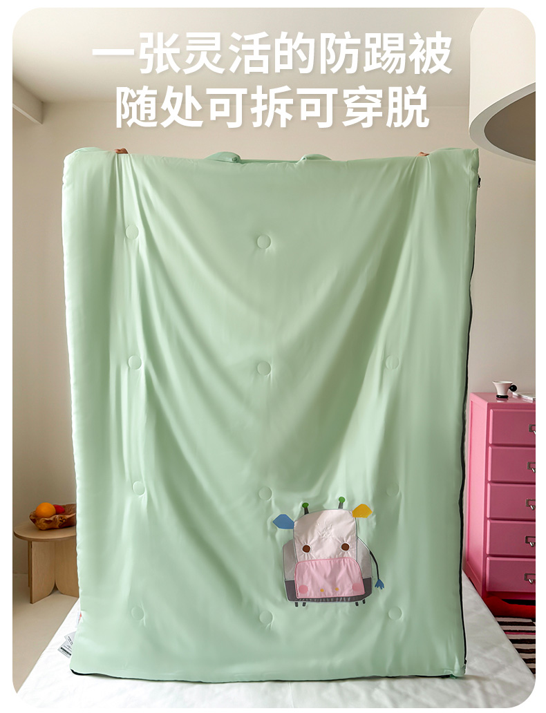 商品名称:喜多兔儿童家纺 2025新款萌宝系列40S纯棉夏季睡袋防踢被 绿色小牛宝宝