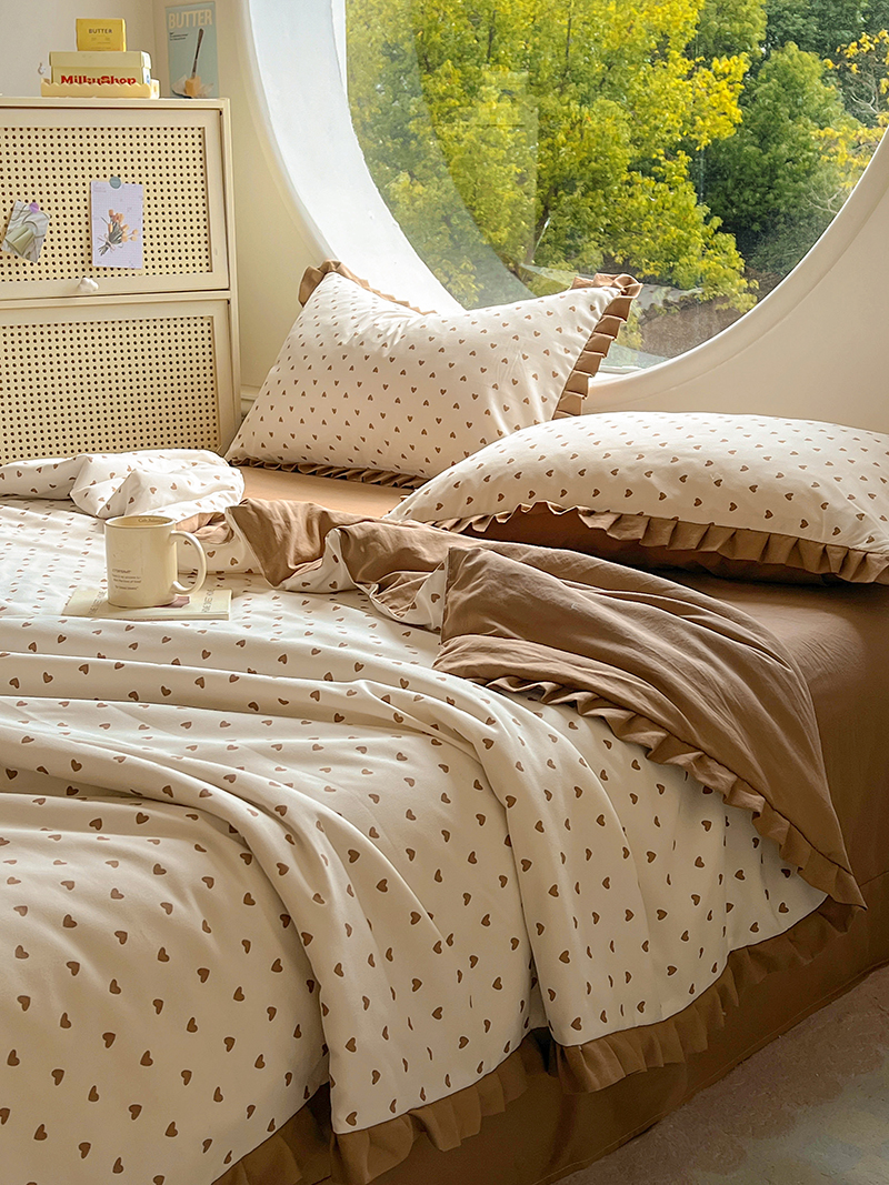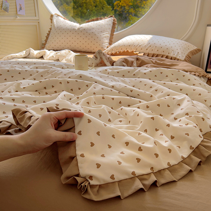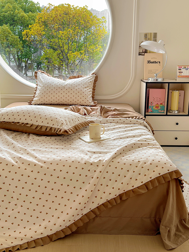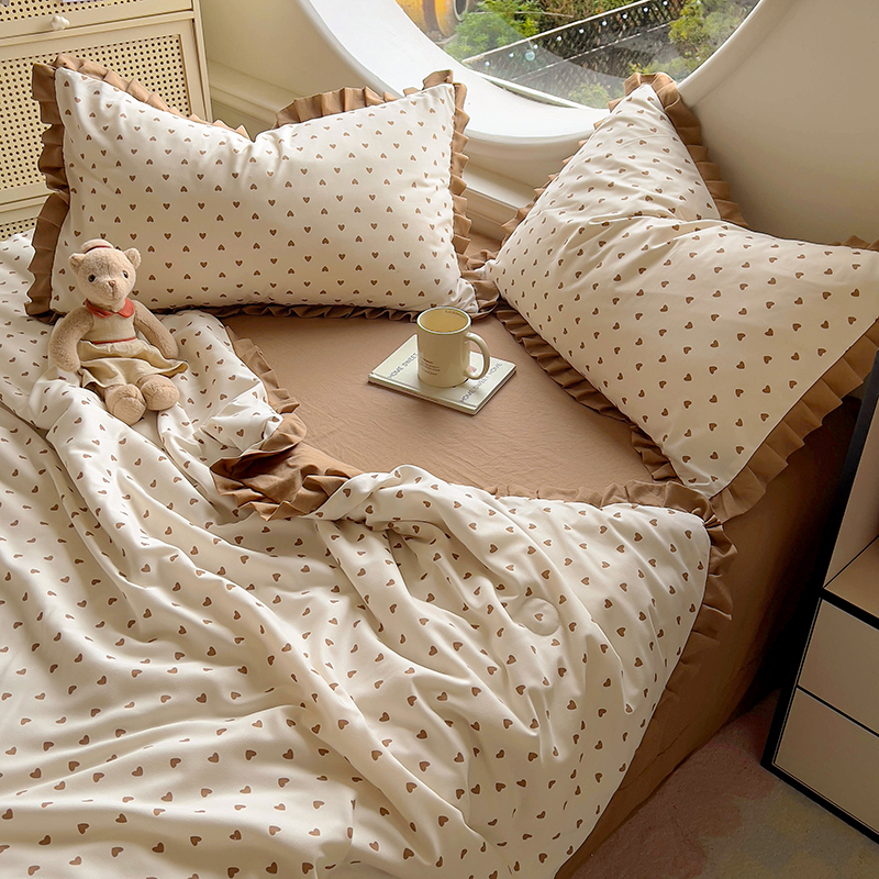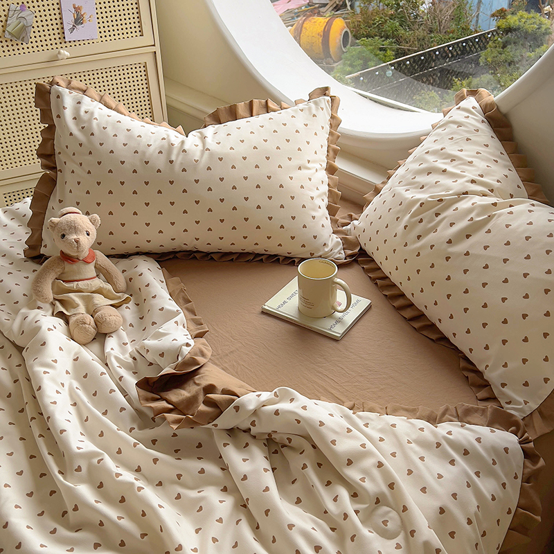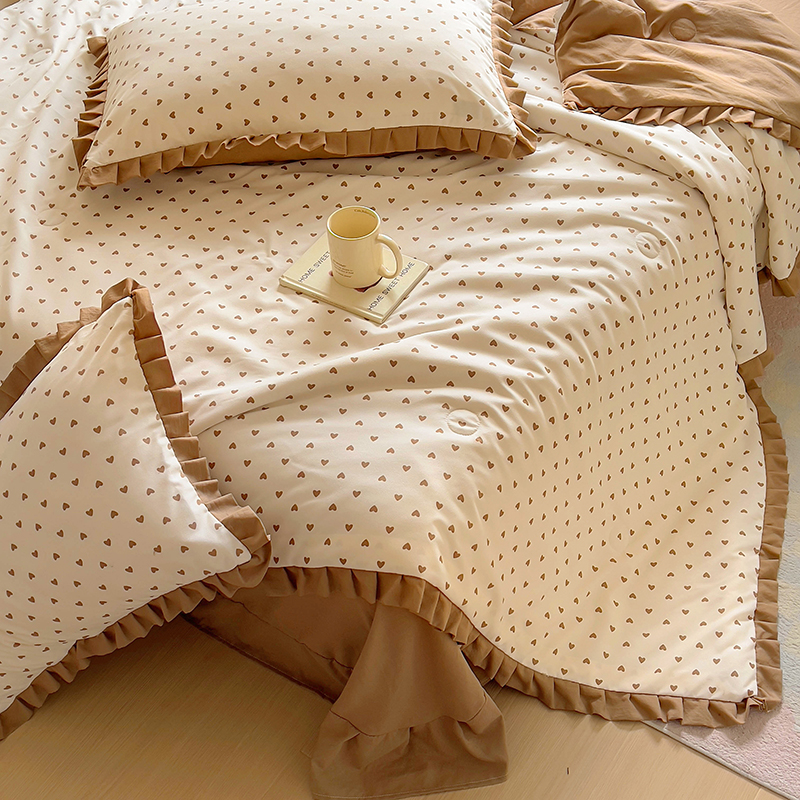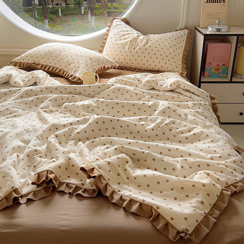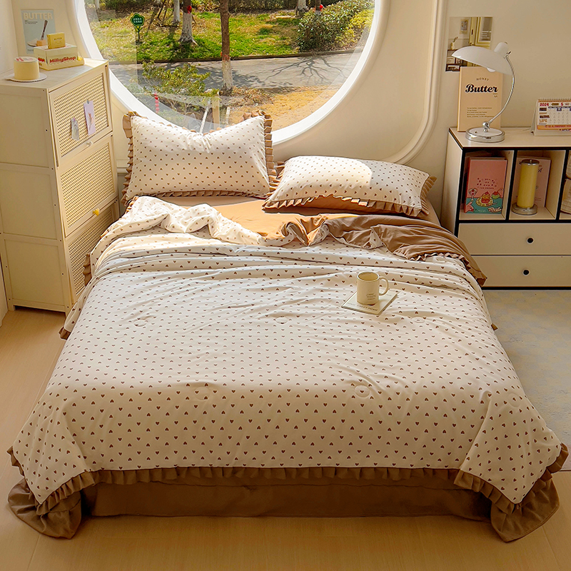欧尚 2025新款夏被四件套 咖爱心