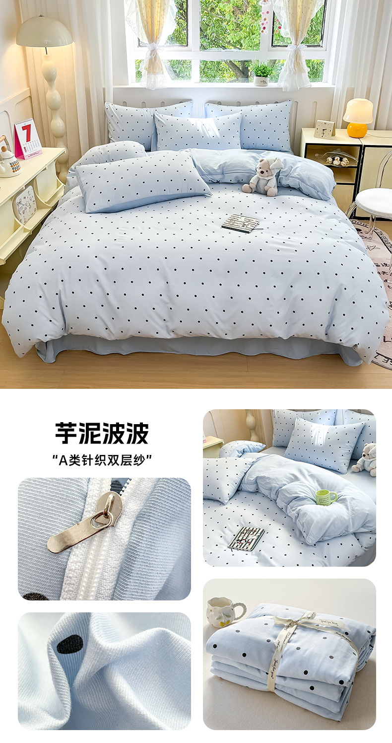 当前位置: 91家纺网 > 商品网购 > 床品套件 > 四件套 > 其它四件套 > 玖明2025新款A类加厚柔软针织棉双层纱四件套 芋泥波波