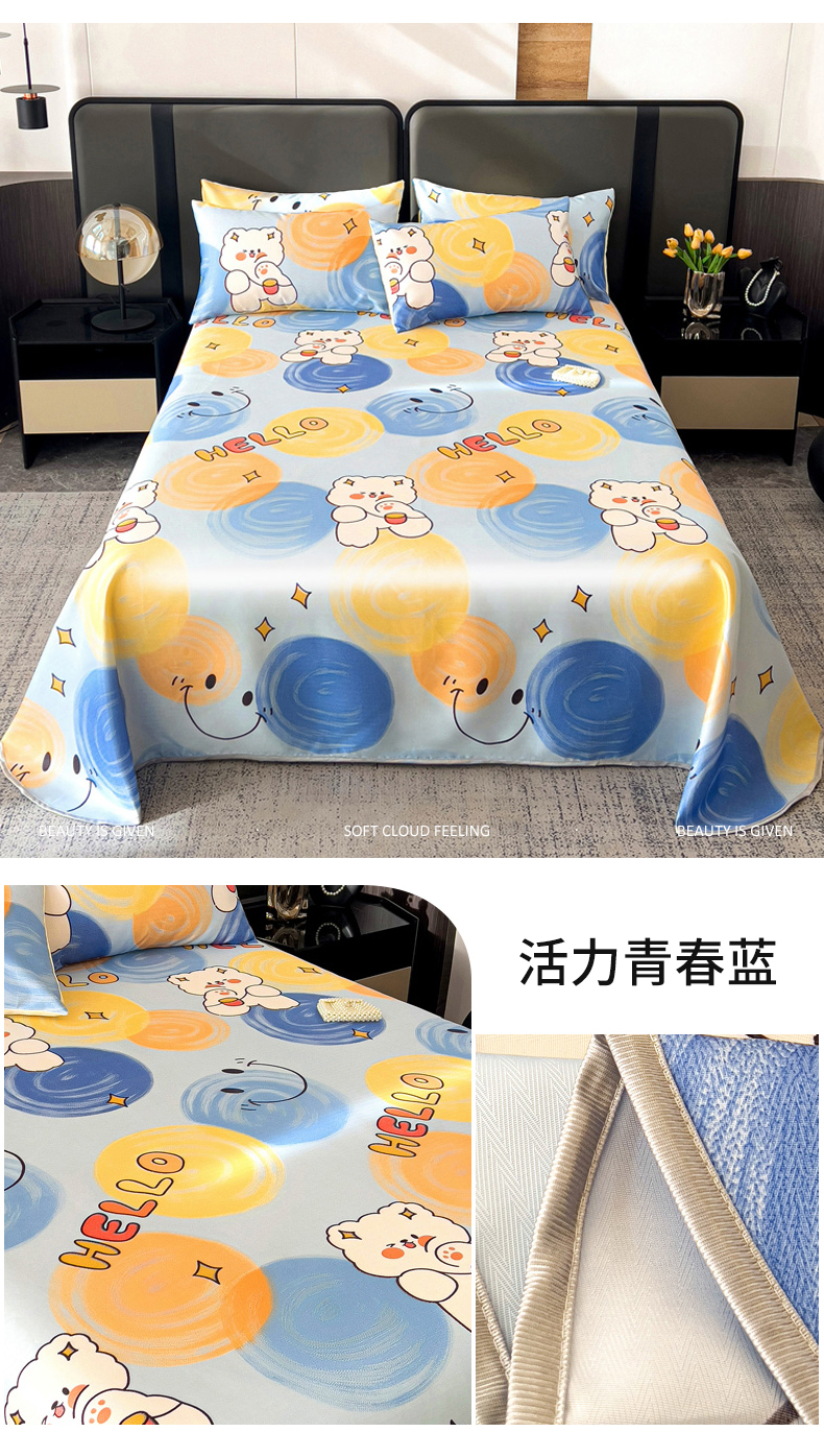 商品名称:纽缦家纺 2025新款印花冰丝防滑床单 活力青春蓝