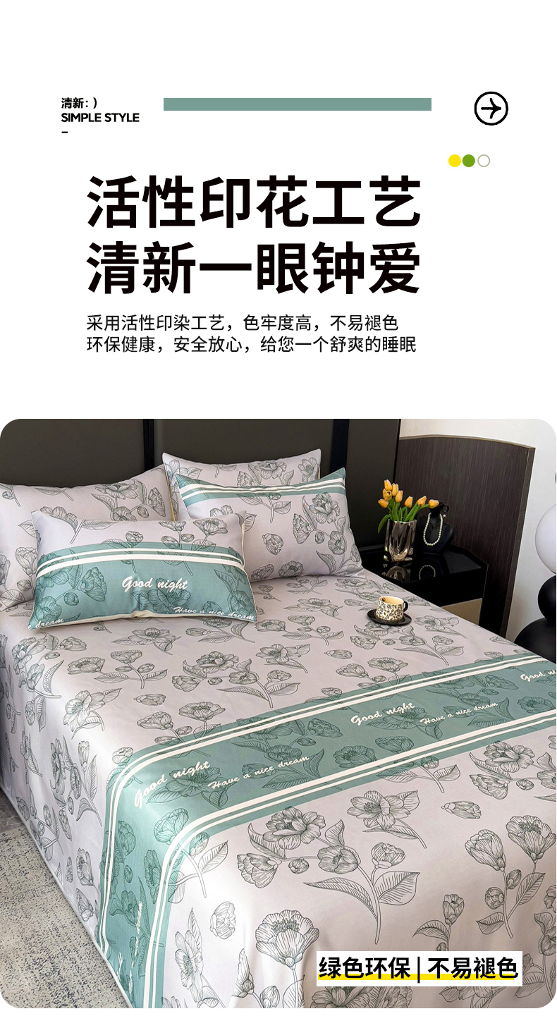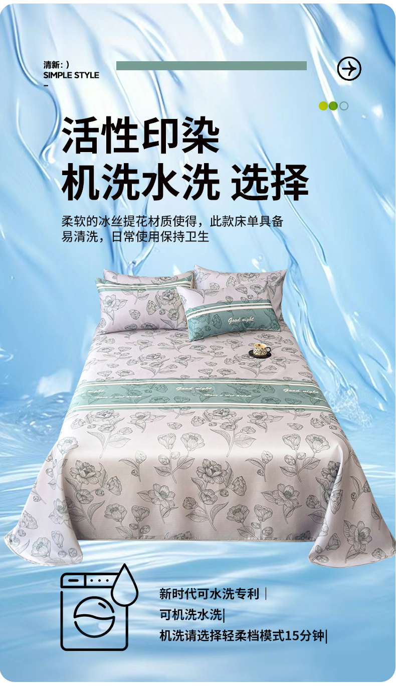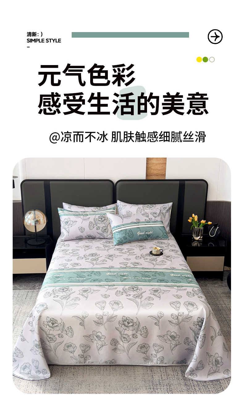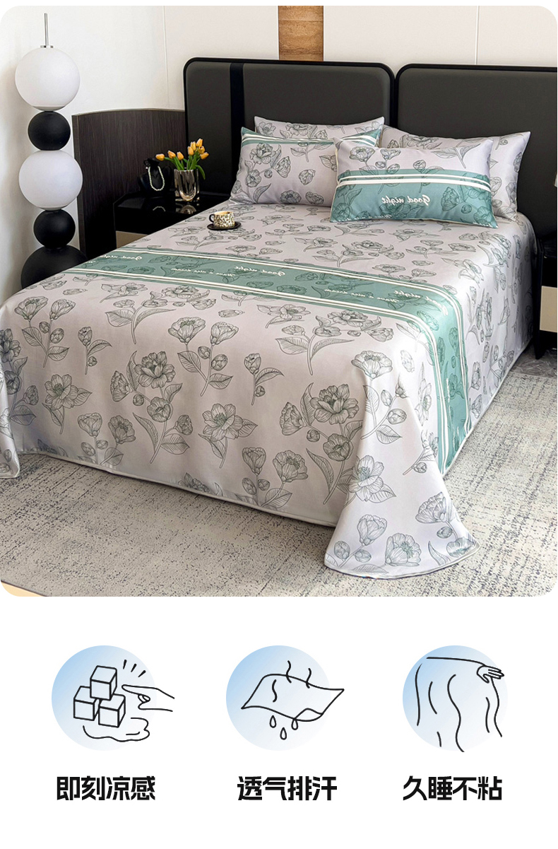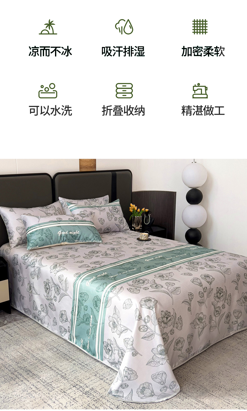 商品名称:纽缦家纺 2025新款印花冰丝防滑床单 秋雨暖熙青
