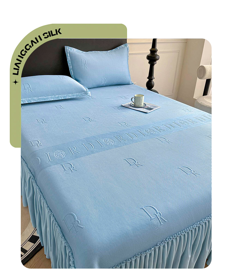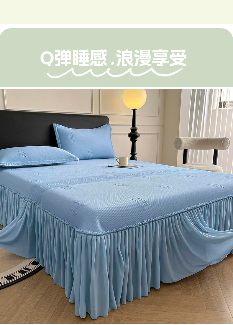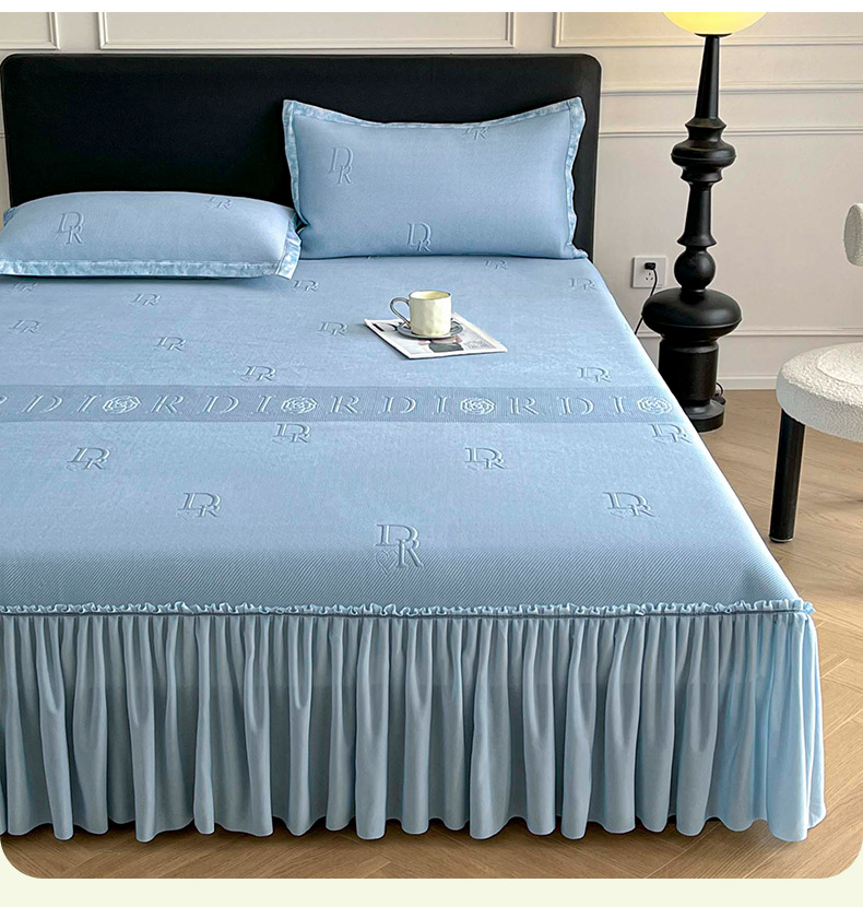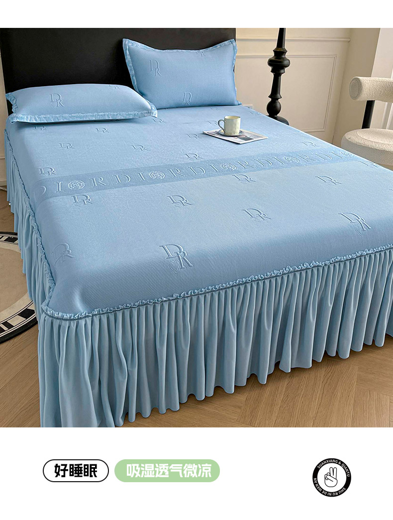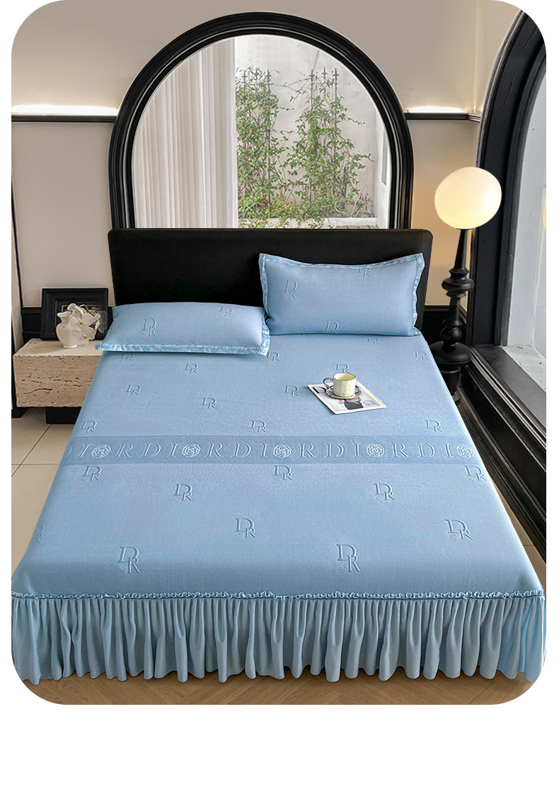 鑫琪莱 2025新款5D立体雕花凉感豆豆冰丝床裙三件套 床裙D款-蓝