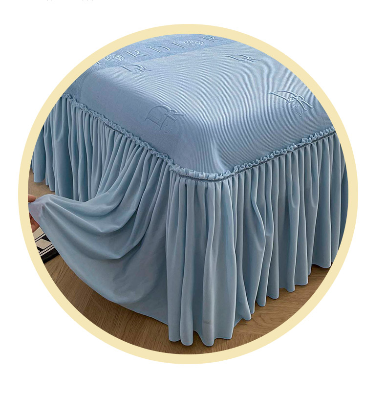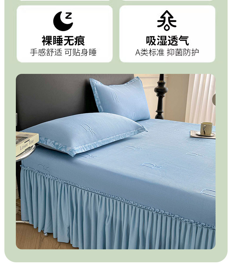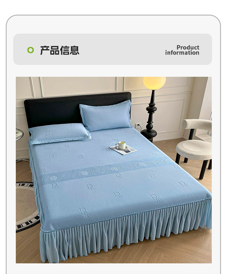 (总)鑫琪莱 2025新款5D立体雕花凉感豆豆冰丝床裙三件套,床裙D款-粉,床裙D款-灰,床裙D款-蓝,床裙H款-粉,床裙H款-灰,床裙H款-蓝,床裙H款-绿