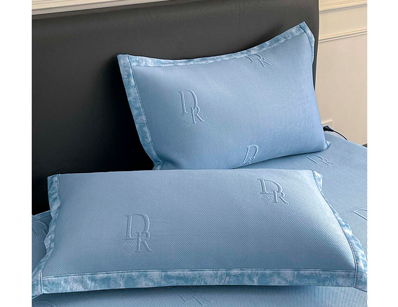 商品名称:鑫琪莱 2025新款5D立体雕花凉感豆豆冰丝床裙三件套 床裙D款-蓝