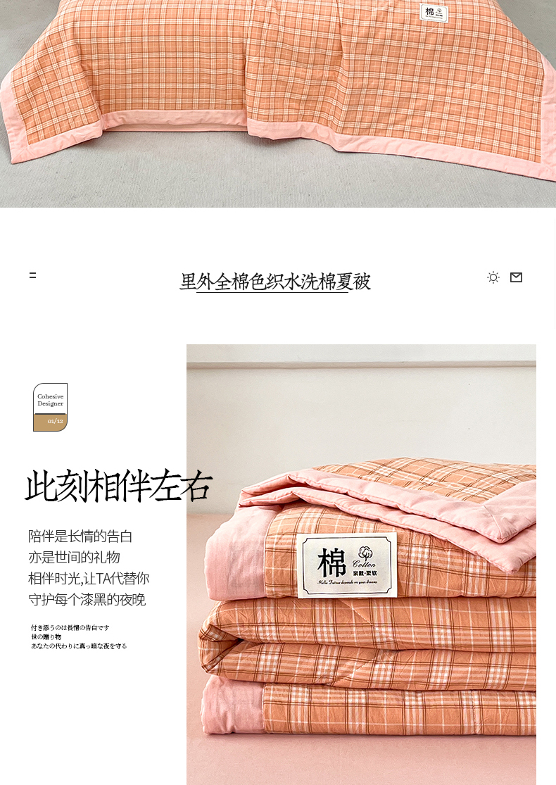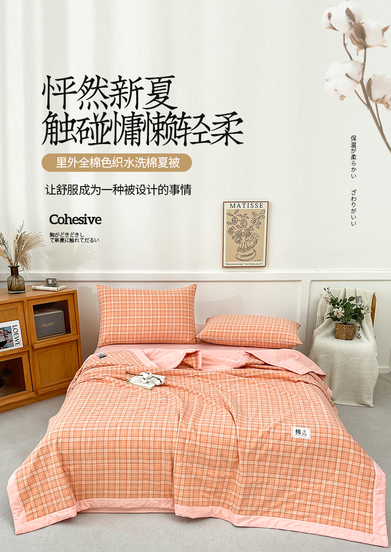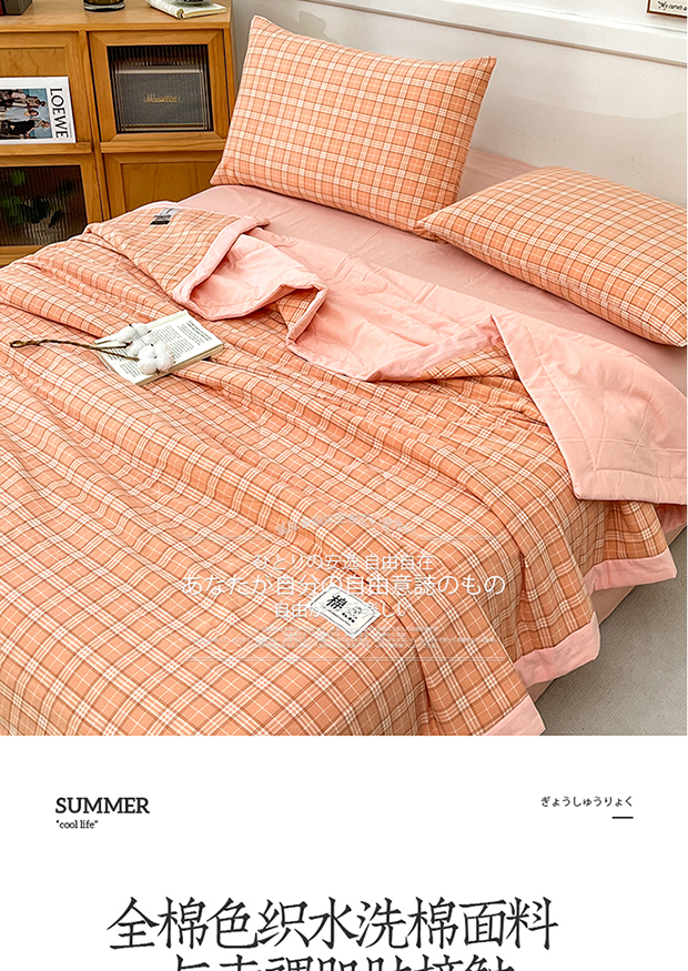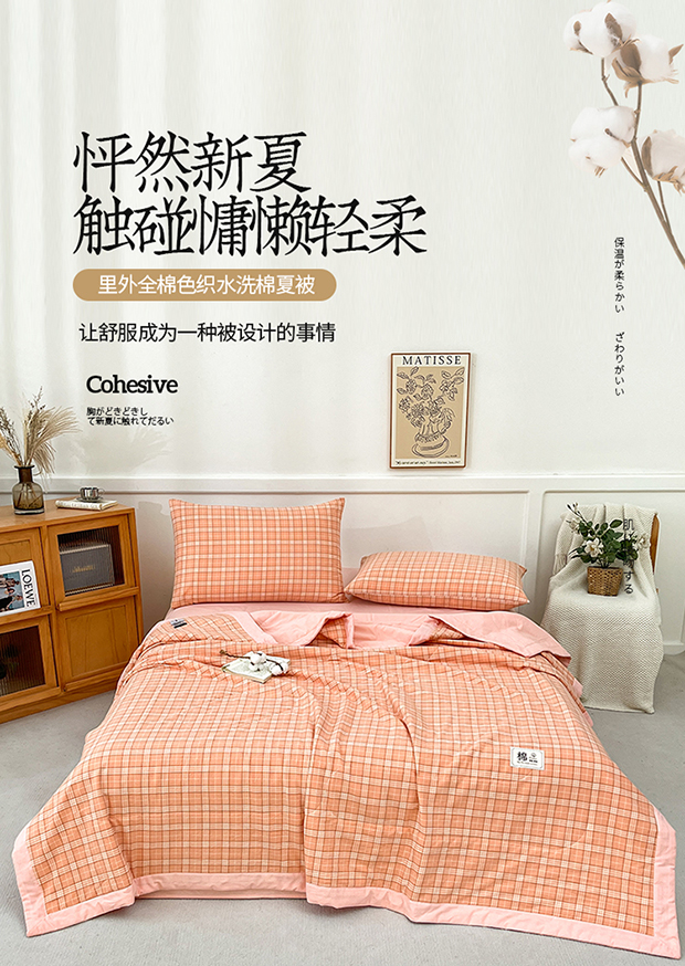 • 91家纺网 家纺一手货源 找家纺 鸣升家纺 2025新款100%里外全棉棉花夏被无印风全棉色织水洗棉夏凉被空调被夏被春秋被单人可机洗 格诺桔