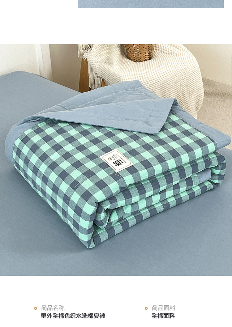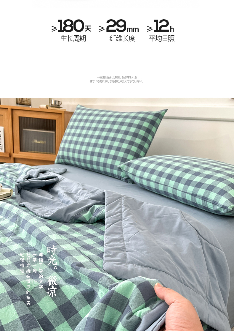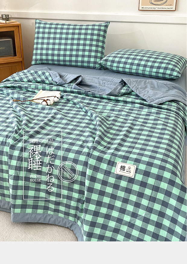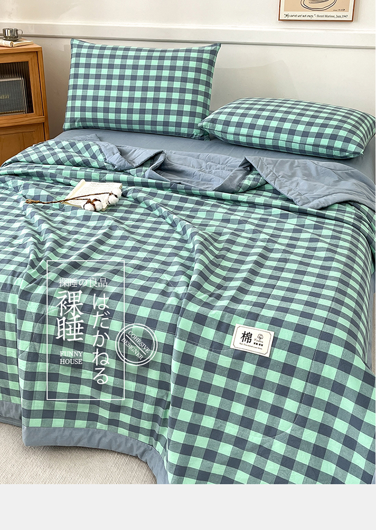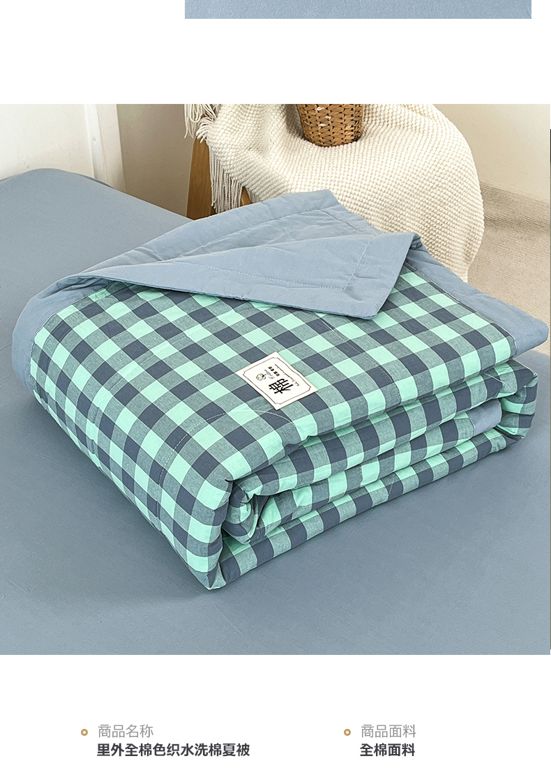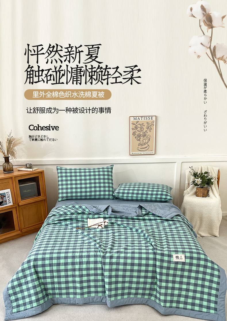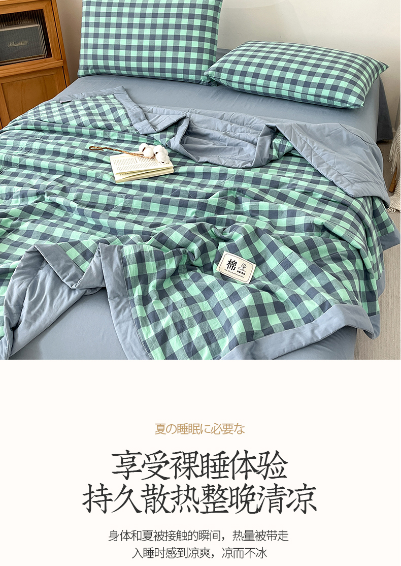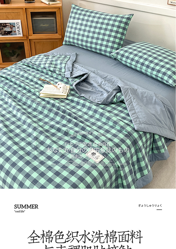 • 91家纺网 家纺一手货源 找家纺 鸣升家纺 2025新款100%里外全棉棉花夏被无印风全棉色织水洗棉夏凉被空调被夏被春秋被单人可机洗 绿灰小格