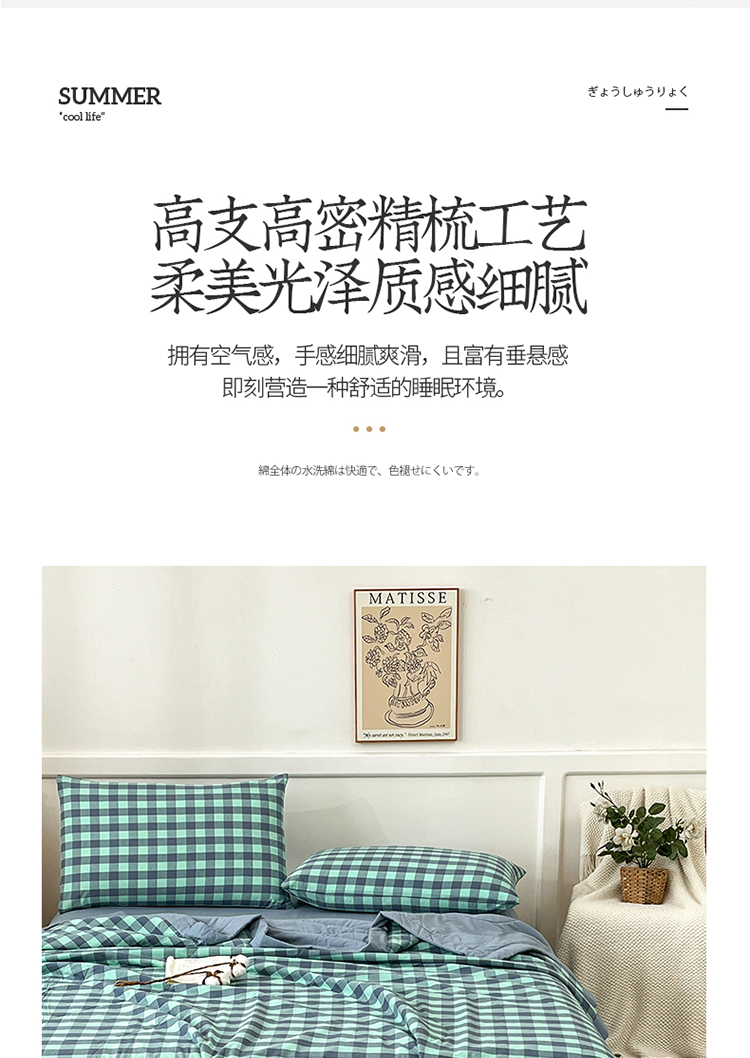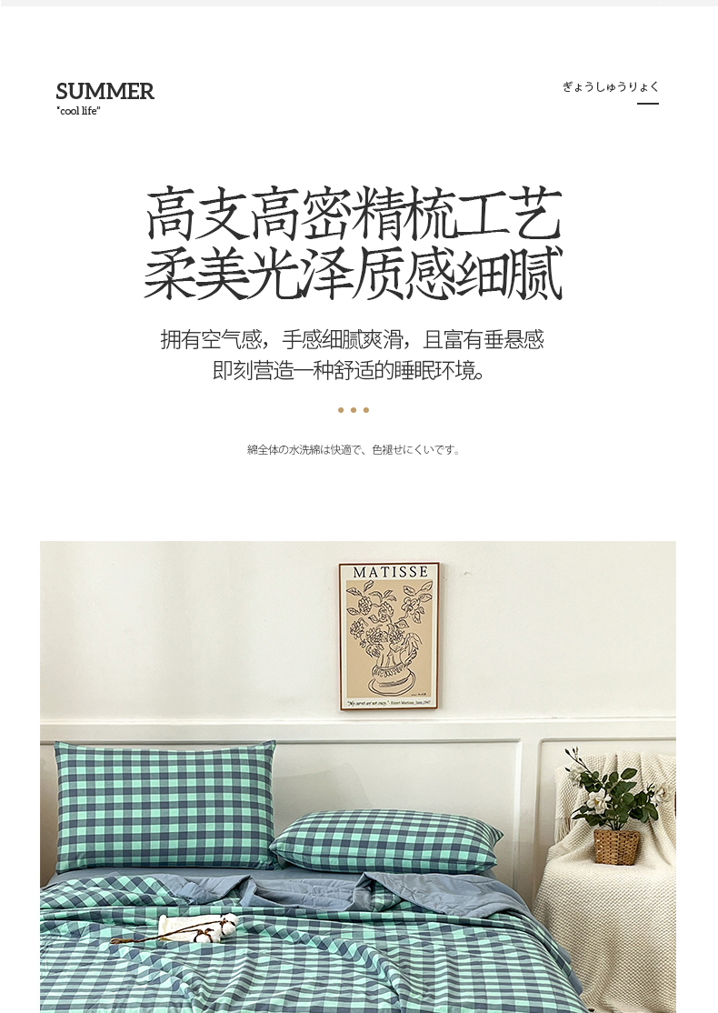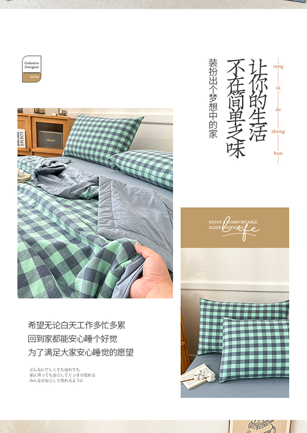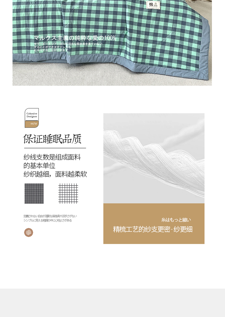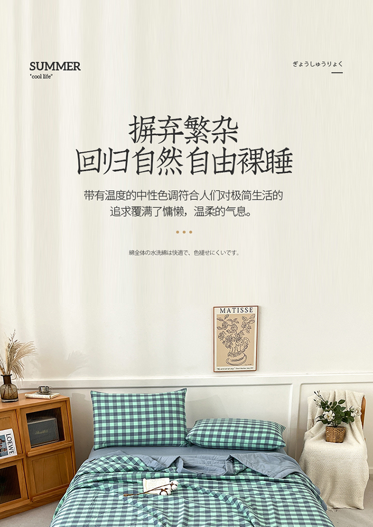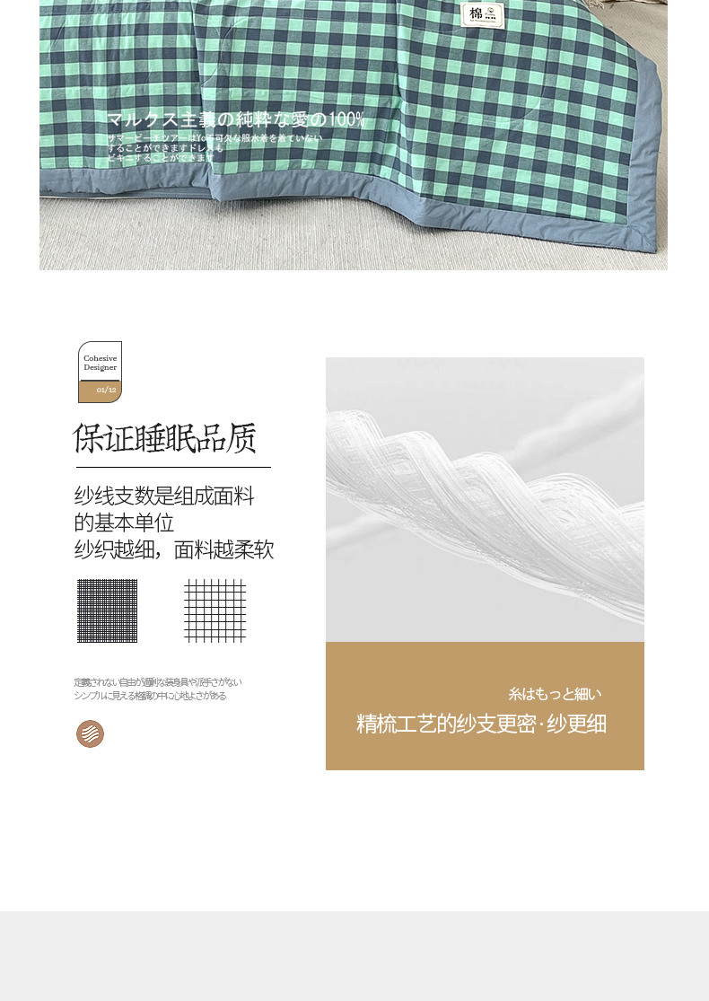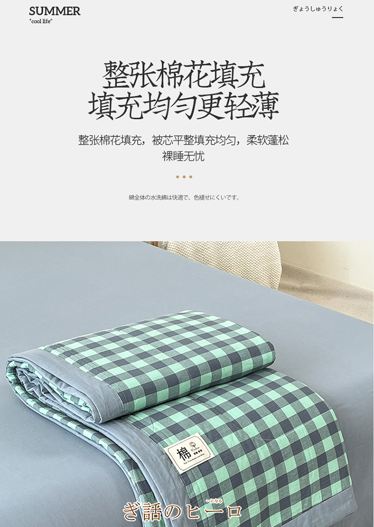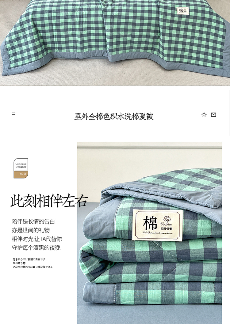 • 91家纺网 家纺一手货源 找家纺 鸣升家纺 2025新款100%里外全棉棉花夏被无印风全棉色织水洗棉夏凉被空调被夏被春秋被单人可机洗 绿灰小格