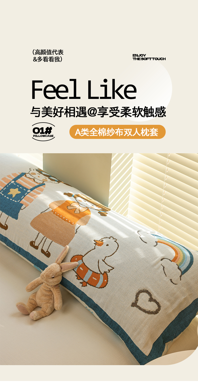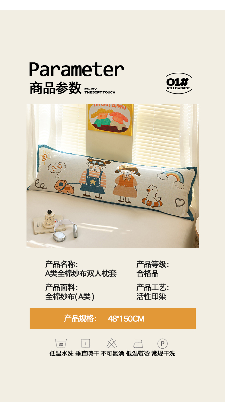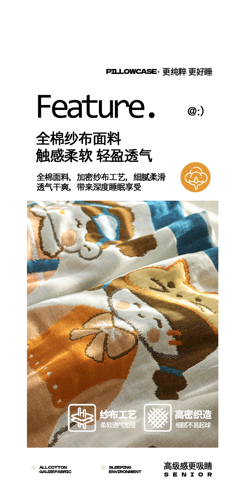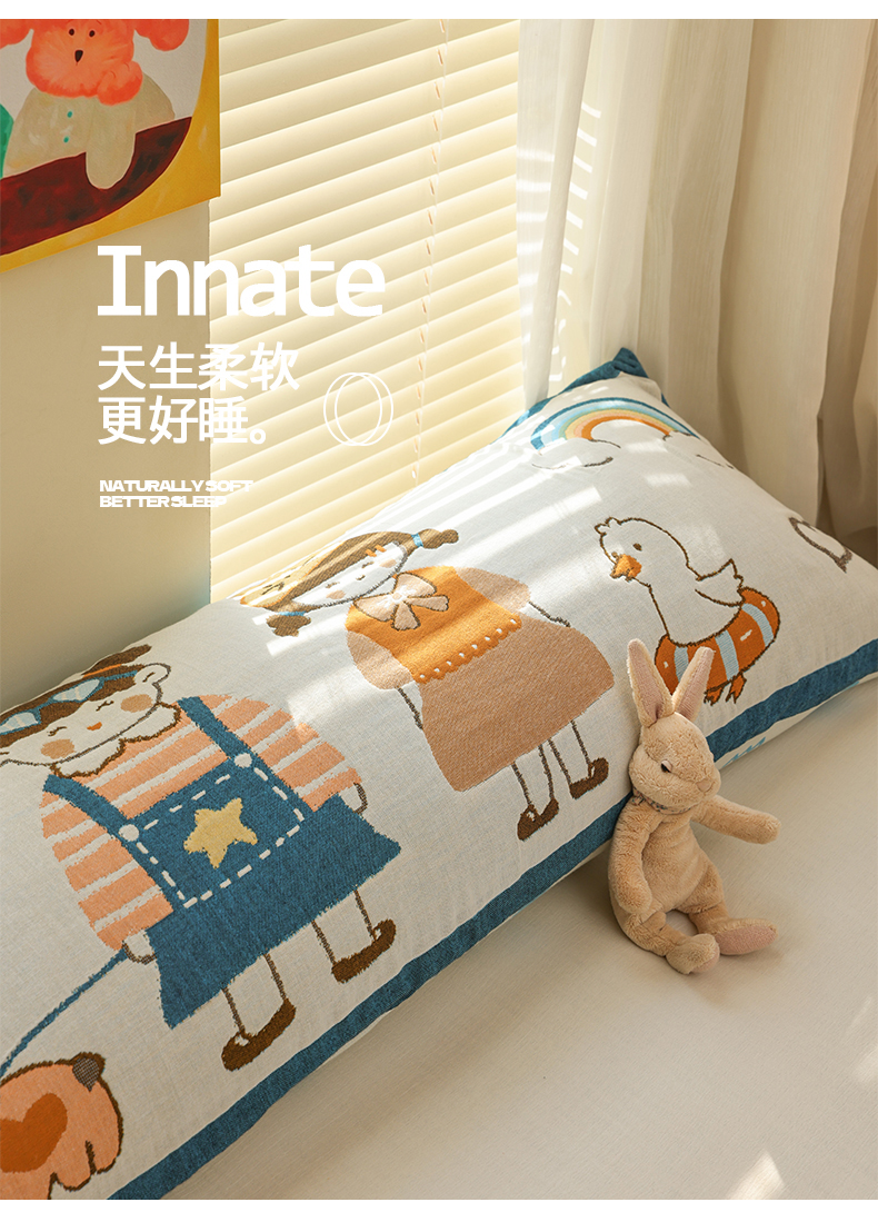 商品名称:雯雨2025新款A类卡通双人纱布枕套 春游
