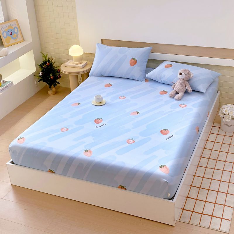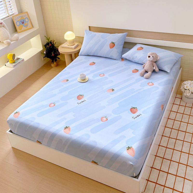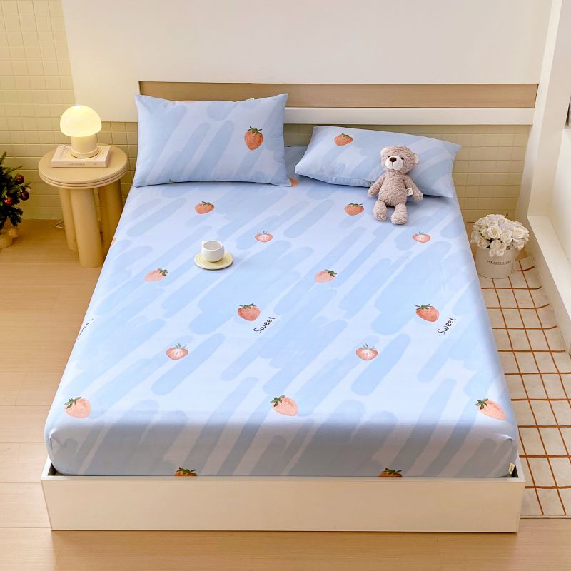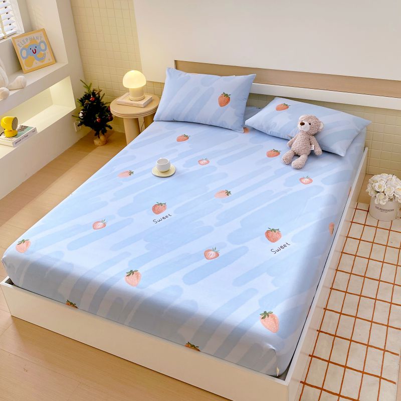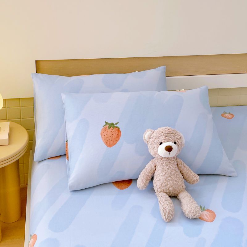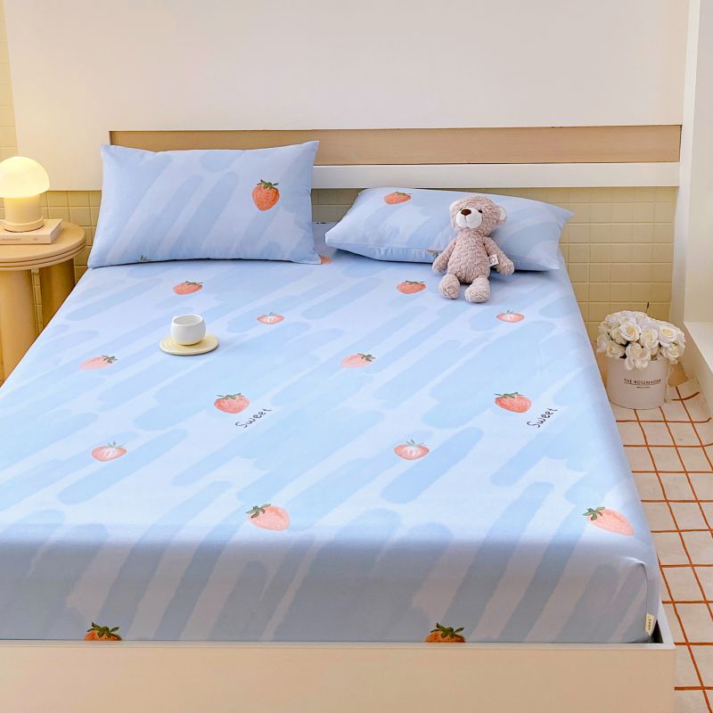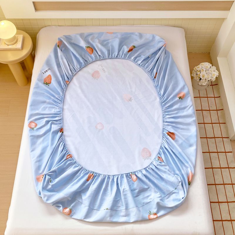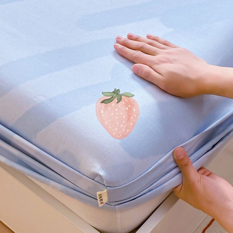 • 91家纺网 家纺一手货源 找家纺 萌飞 2025新款全棉纯棉老粗布席子凉席卡通床笠 全棉卡通-草莓-蓝