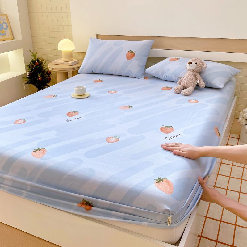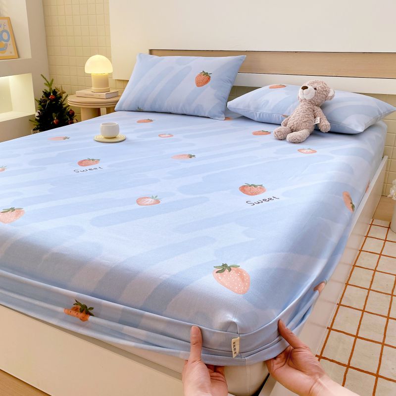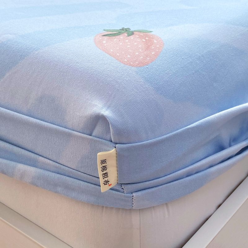 萌飞 2025新款全棉纯棉老粗布席子凉席卡通床笠 全棉卡通-草莓-蓝