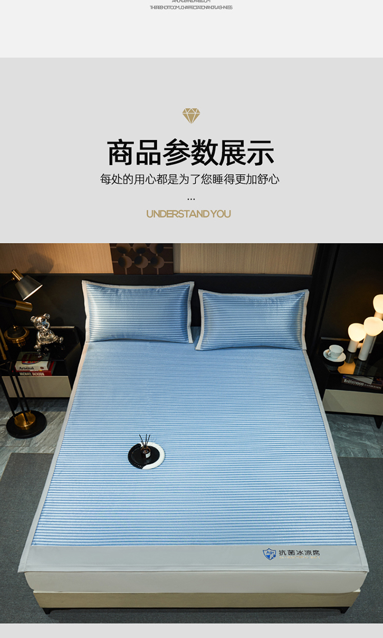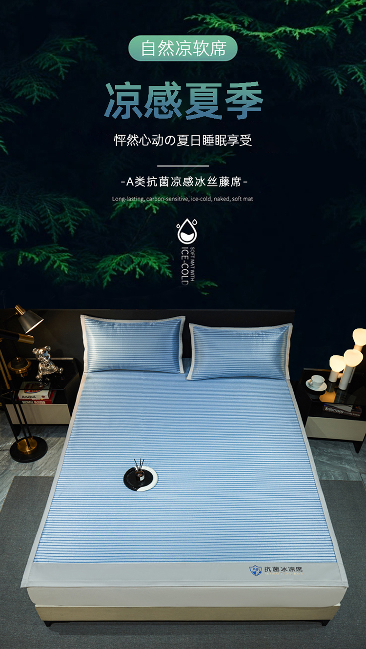 当前位置: 91家纺网 > 商品网购 > 床上用品 > 凉席 > 冰丝席 > 小萌虎 2025新款轻柔丝抗菌冰丝藤凉席(复合三明治款)宽包刺绣冰丝软席藤席 抗菌三明治冰丝藤席-冰川-绅士蓝