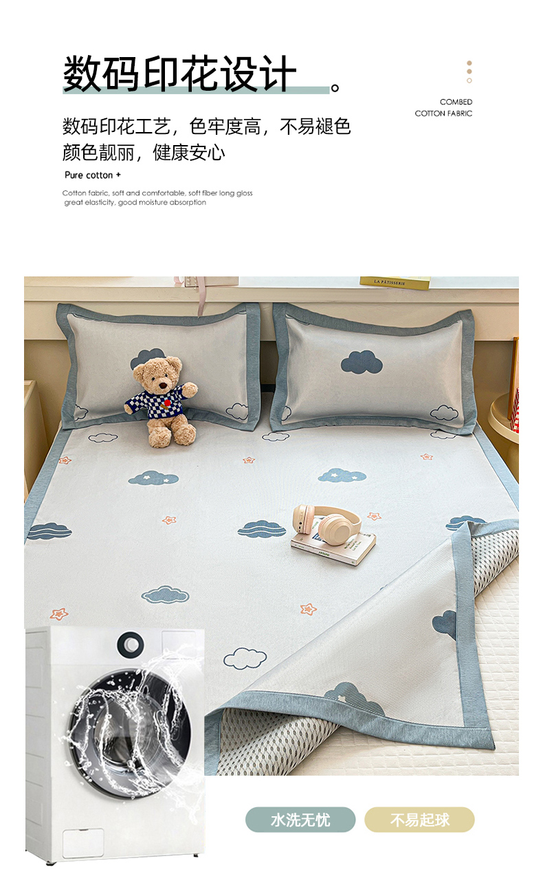 商品名称:花言狐语 2025新款印花真冰藤冰凉席 蓝天白云