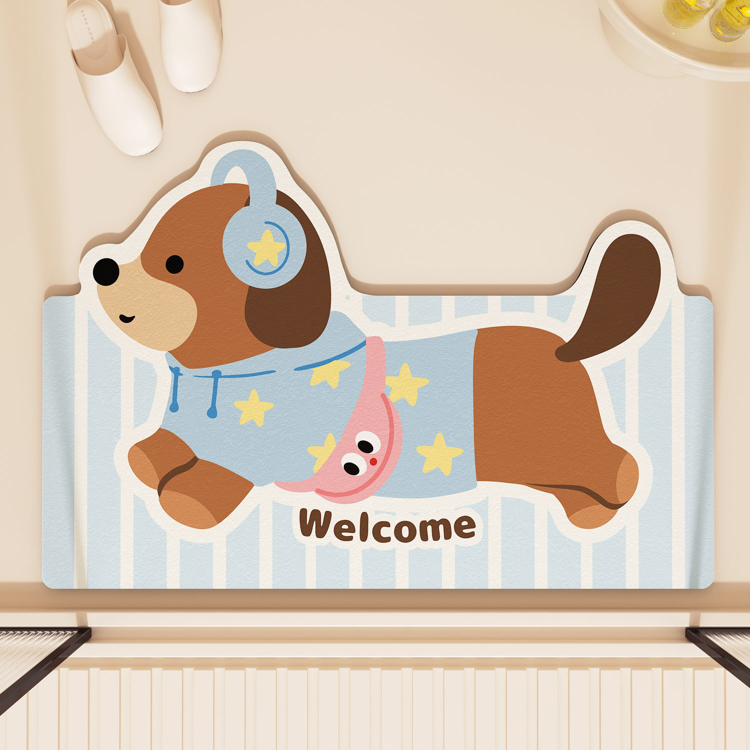 (总)卡初家居(原微来)2025新款双面防滑浴室硅藻泥地垫-小狗