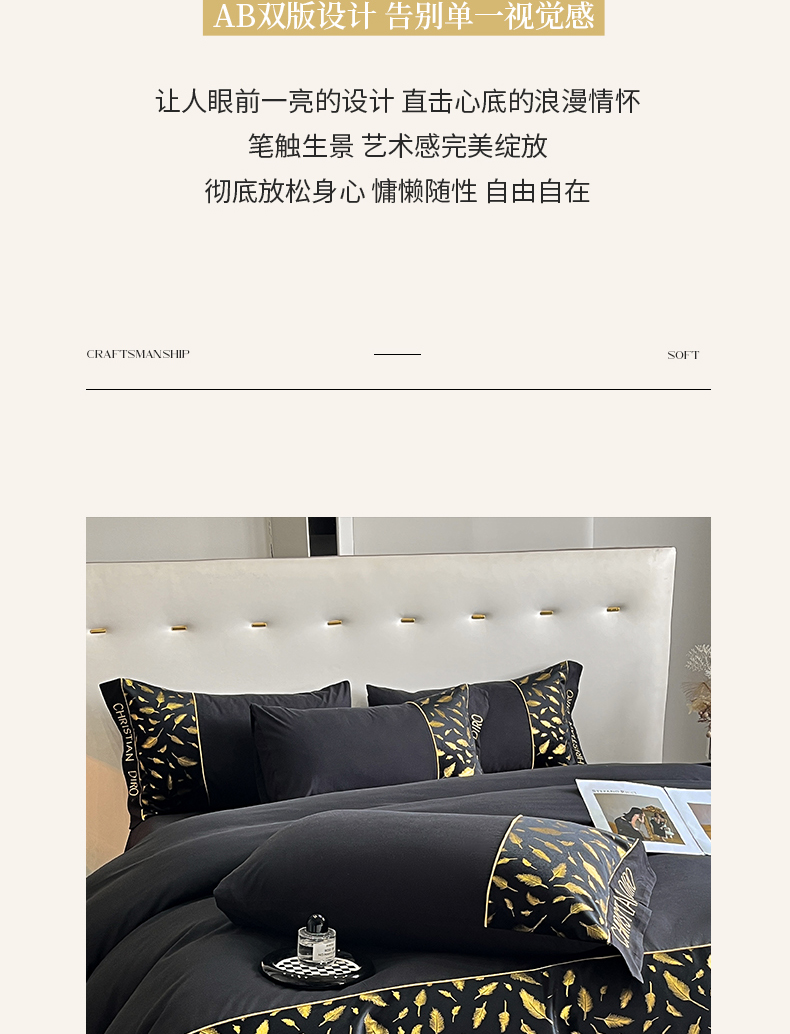 商品名称:苏源家居 2025新款轻奢亲肤棉刺绣烫金工艺四件套 羽毛-耀黑