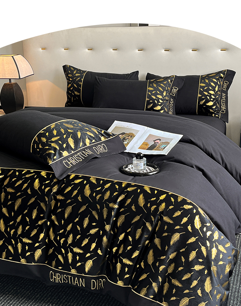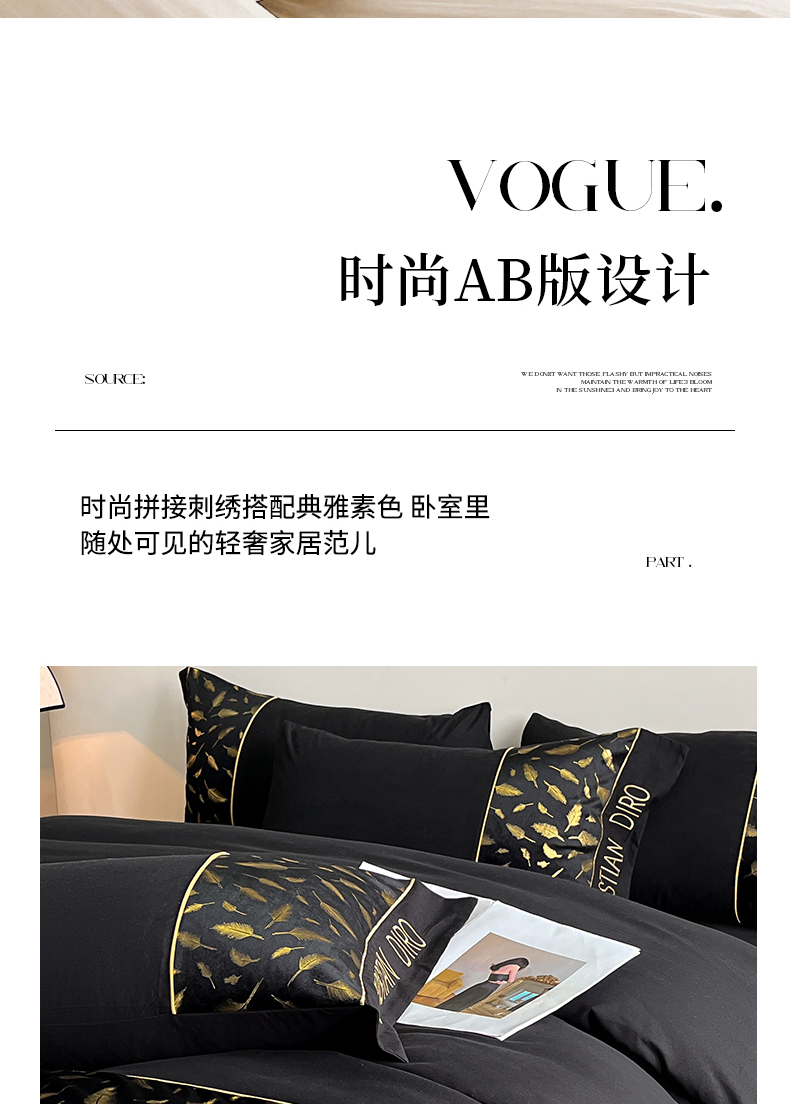 苏源家居 2025新款轻奢亲肤棉刺绣烫金工艺四件套 羽毛-耀黑