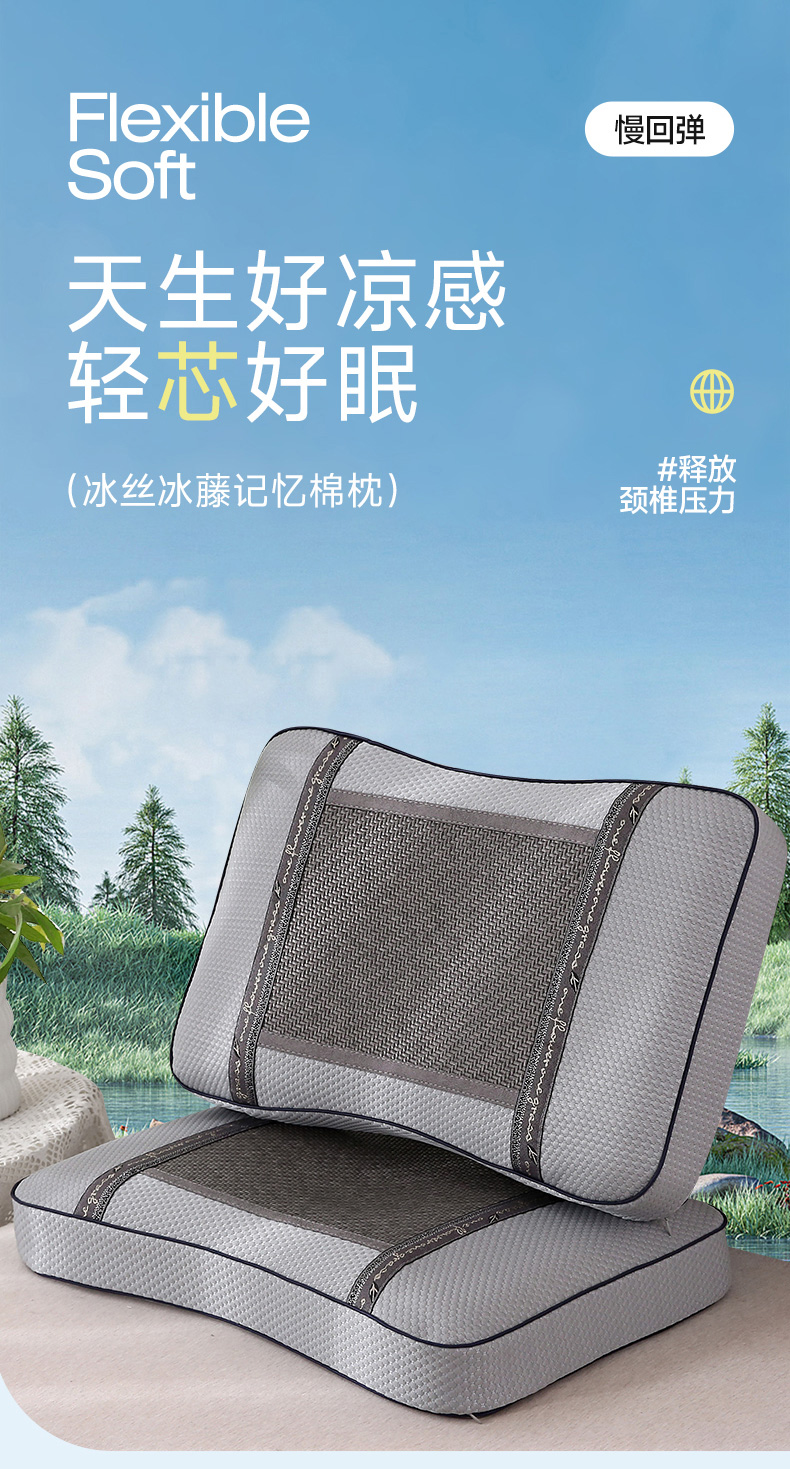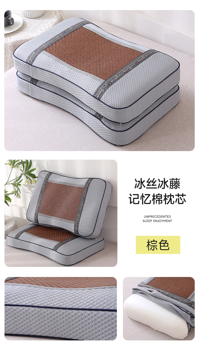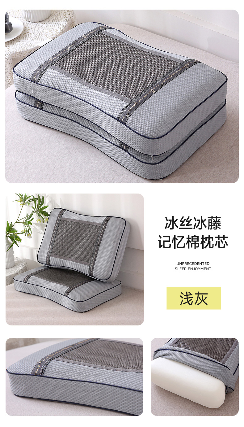商品名称:纽乐家纺 2025夏季夏凉凉席枕芯冰丝冰藤护颈椎记忆棉枕头助睡眠冰藤枕头枕芯 冰丝冰藤记忆枕-浅灰 35x55cm/只