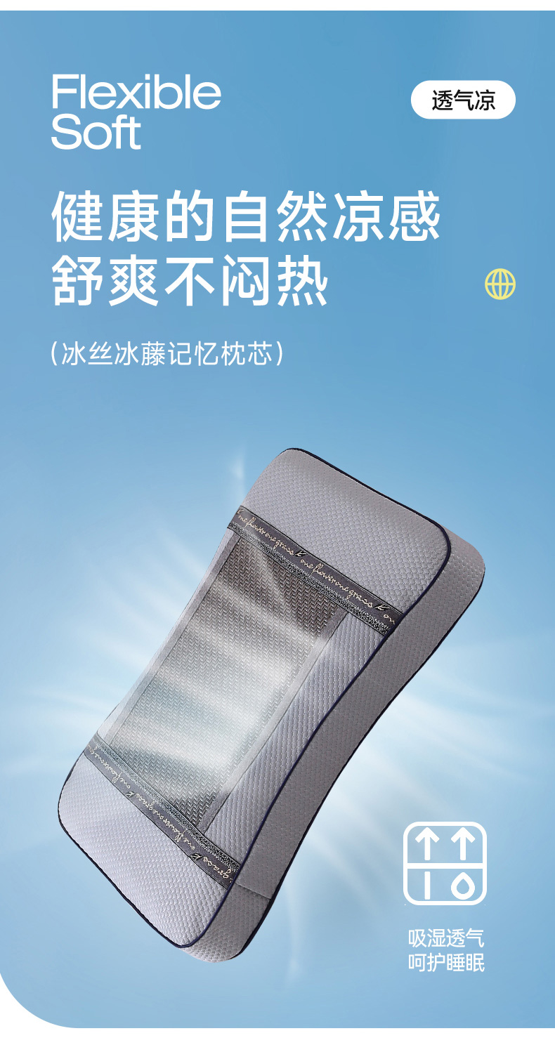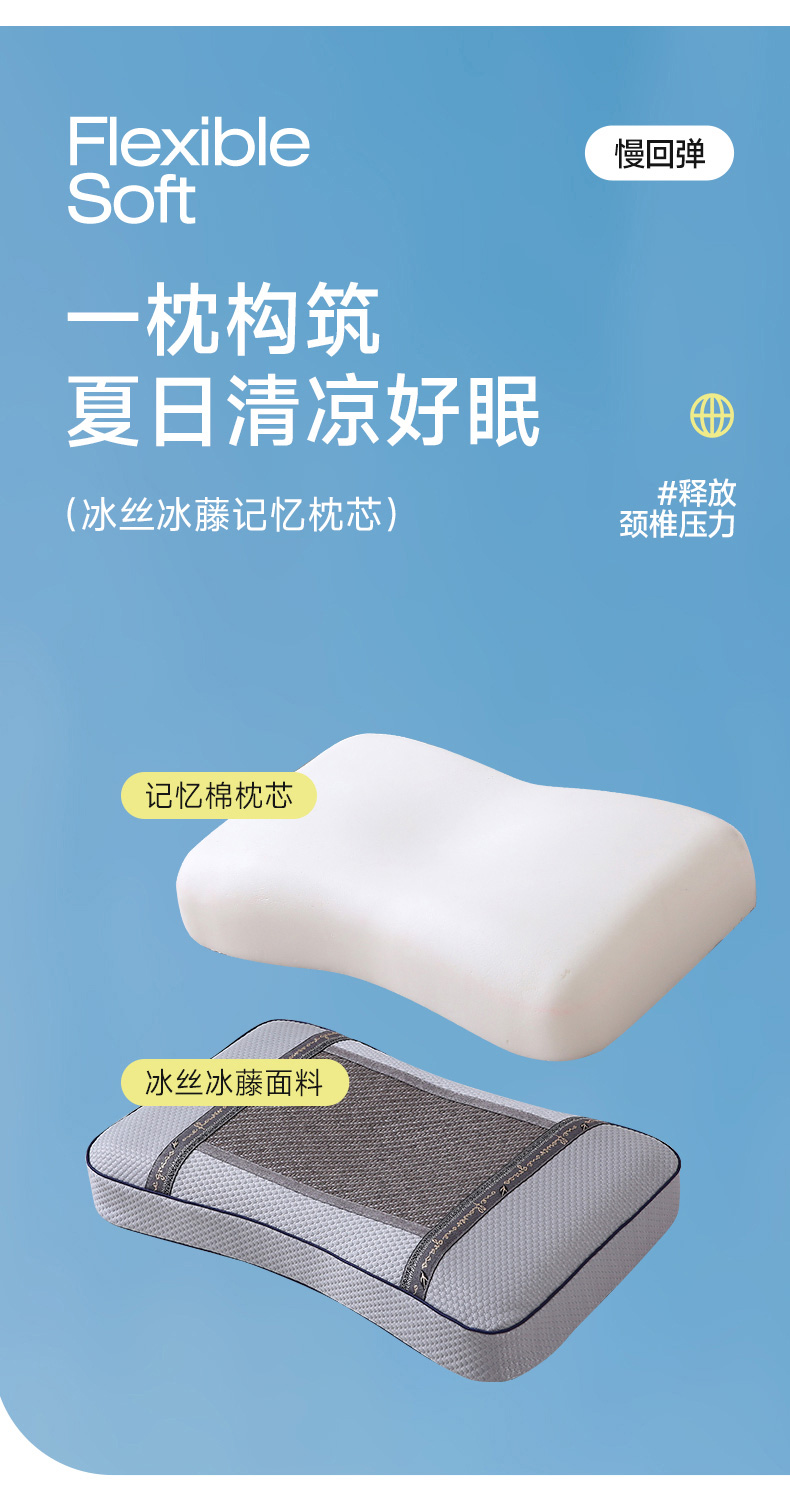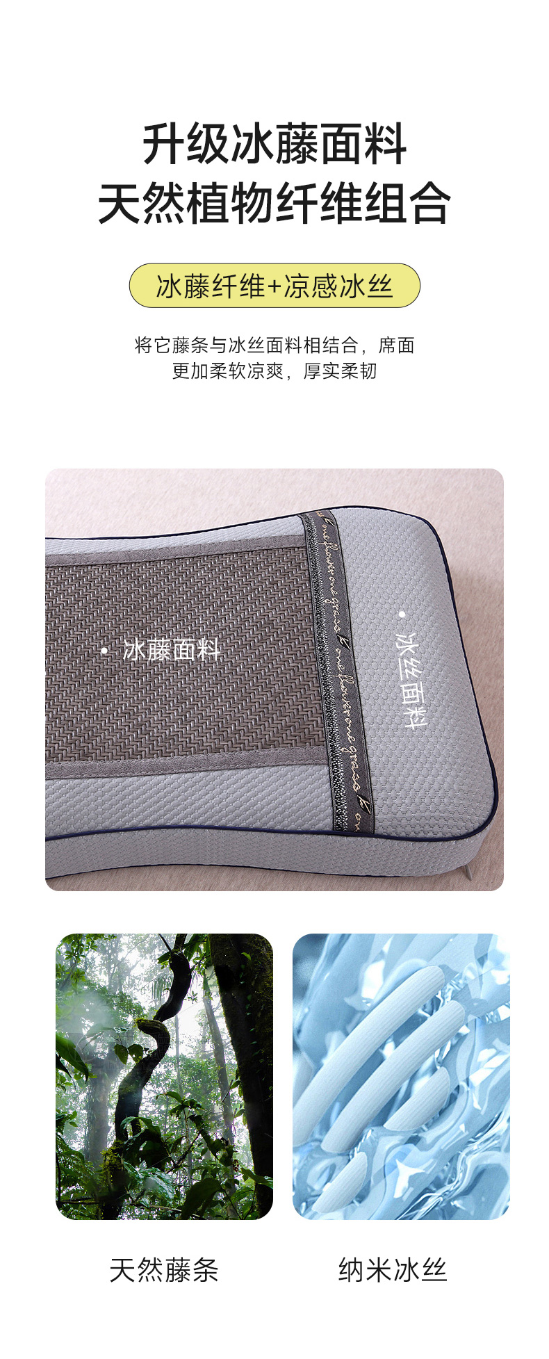 商品名称:纽乐家纺 2025夏季夏凉凉席枕芯冰丝冰藤护颈椎记忆棉枕头助睡眠冰藤枕头枕芯 冰丝冰藤记忆枕-浅灰 35x55cm/只