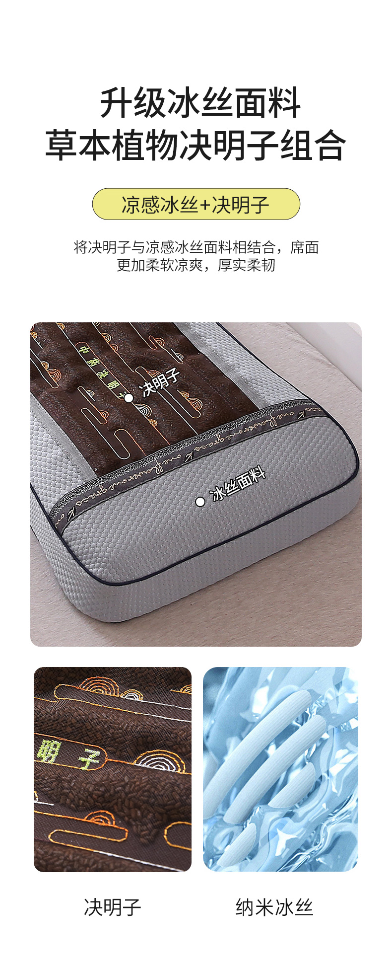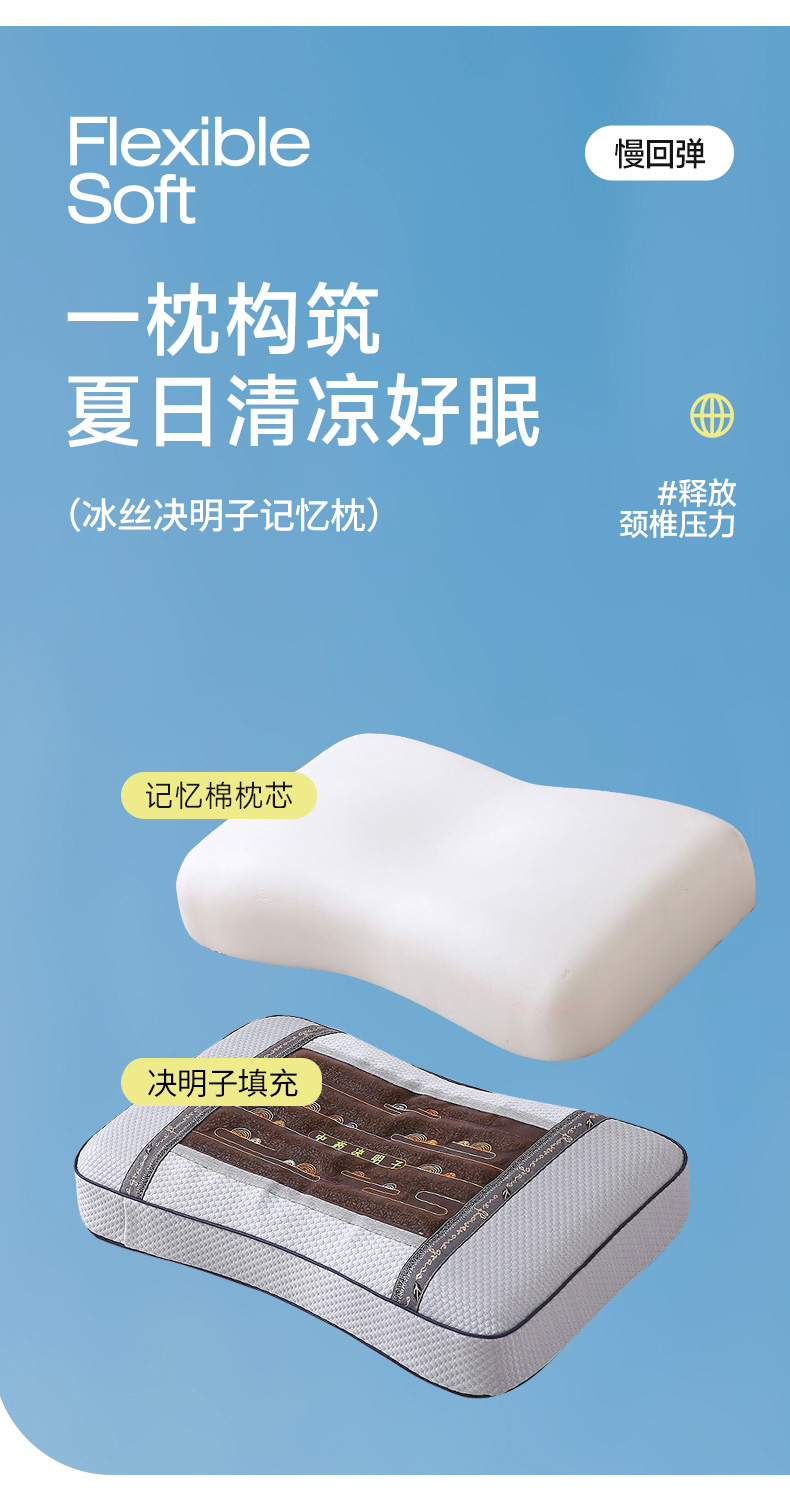 商品名称:纽乐家纺 2025夏季夏凉凉席枕芯冰丝决明子护颈椎记忆棉枕头助睡眠凉豆豆枕头枕芯 冰丝决明子记忆枕 35x55cm/只