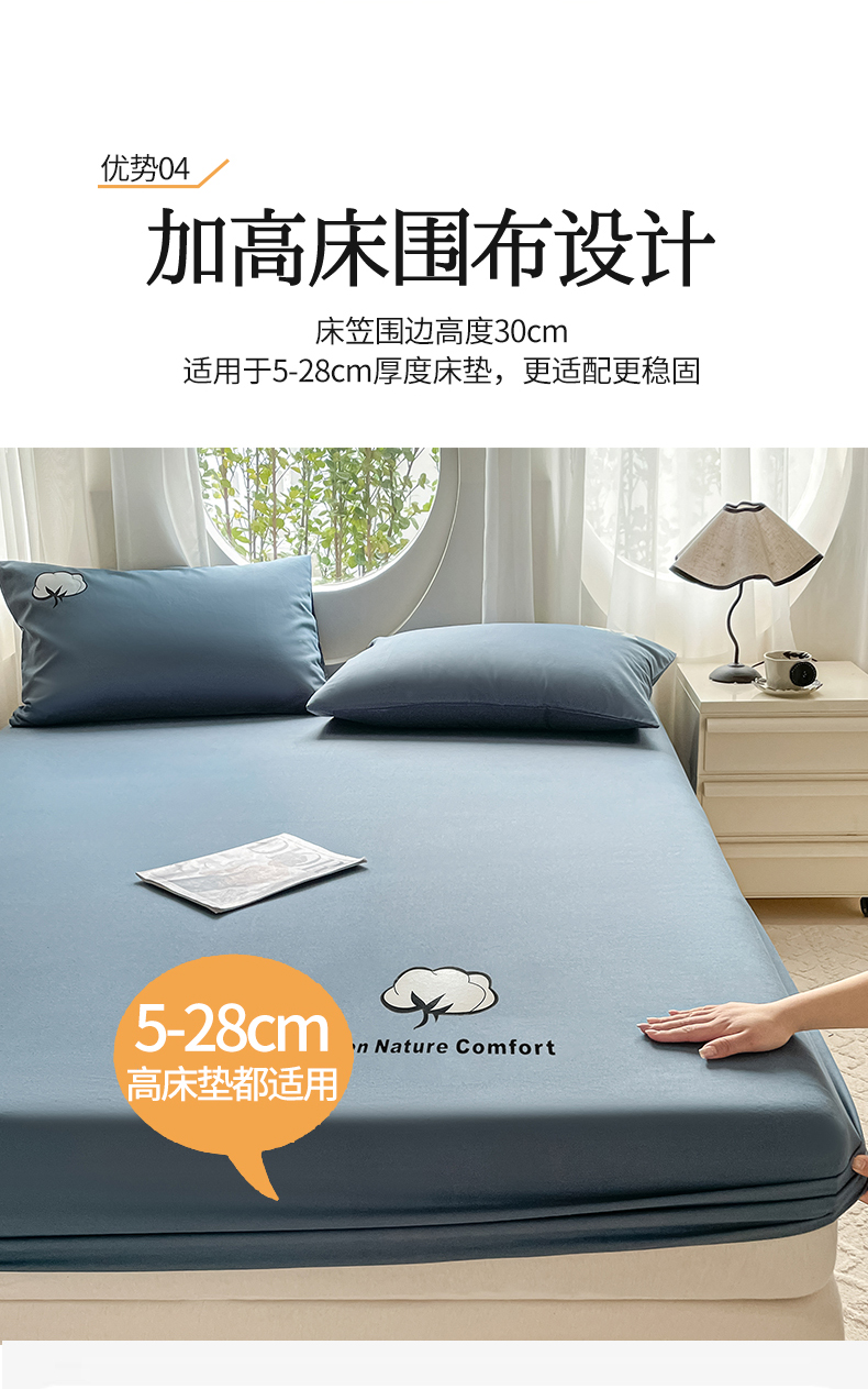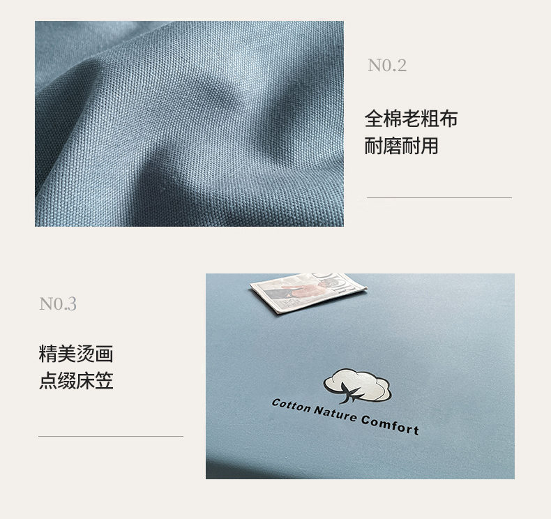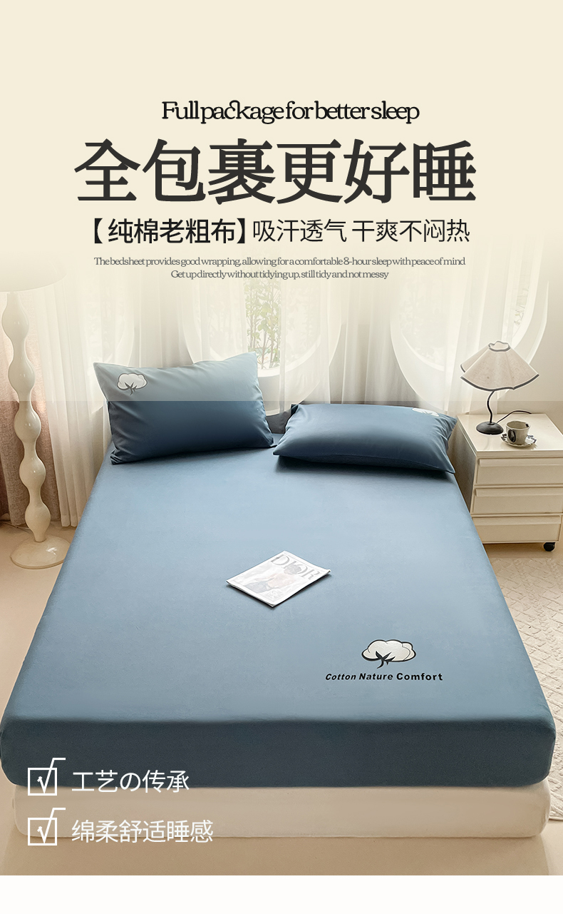 商品名称:布卢姆床垫 2025新款全棉烫画全棉老粗布床笠 棉朵-藏蓝