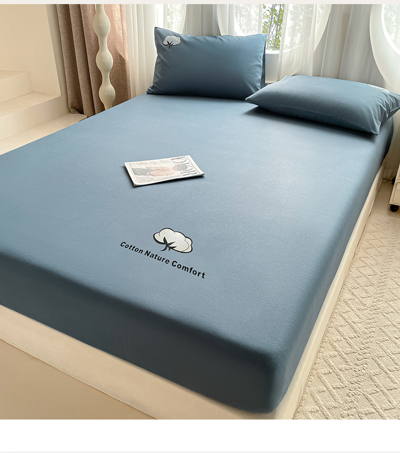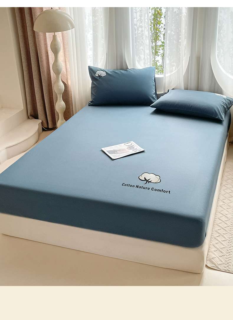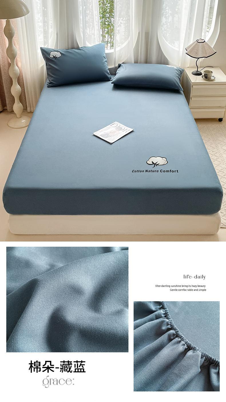 布卢姆床垫 2025新款全棉烫画全棉老粗布床笠 棉朵-藏蓝