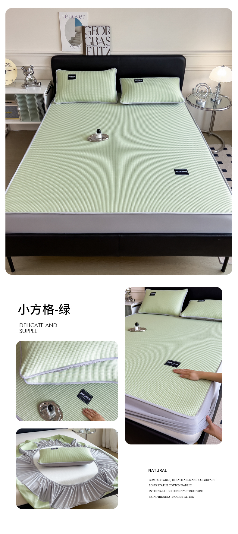 商品名称:(总)丝羽坊 2025新款立体冰豆豆纯色软凉席-床笠款 小方格-绿