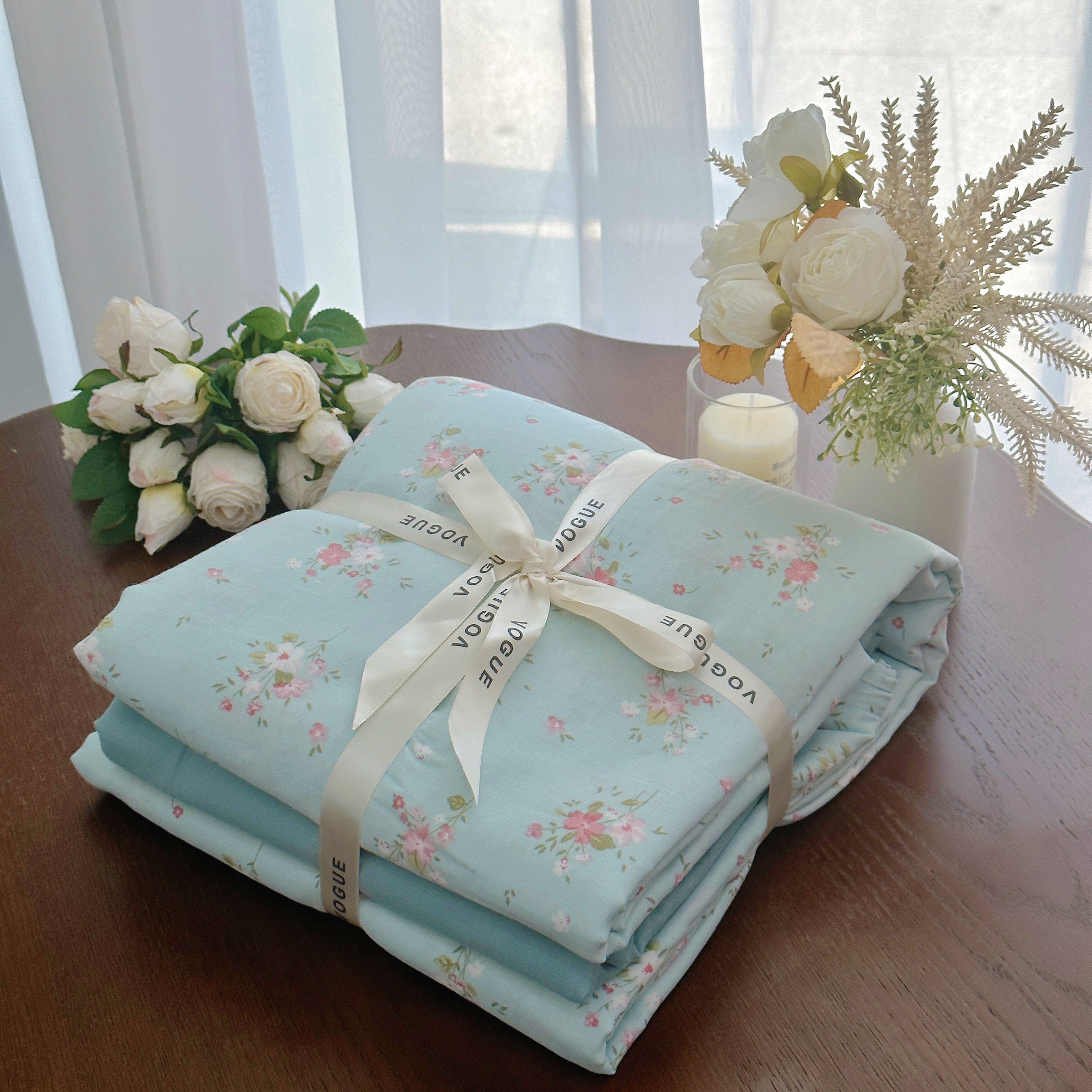 商品名称:黛馨家居2025新款全棉A类小清新双层纱四件套-系列二 温妮-蓝
