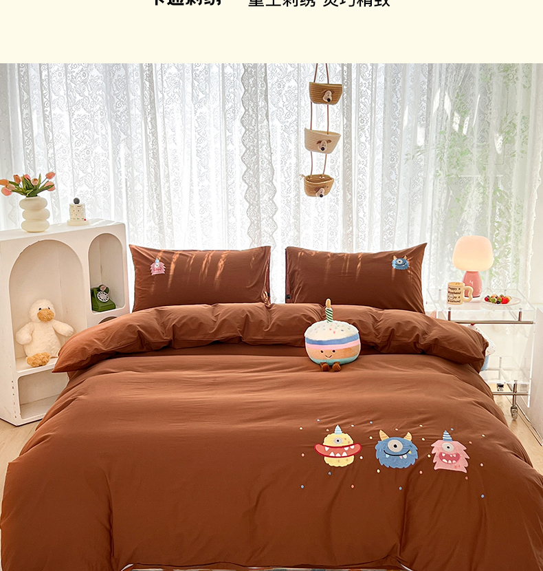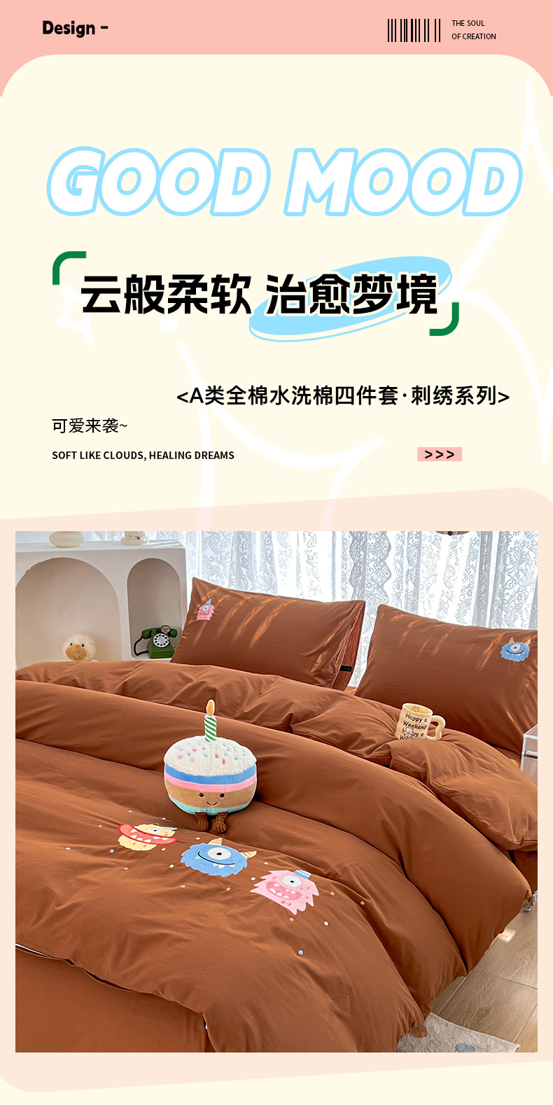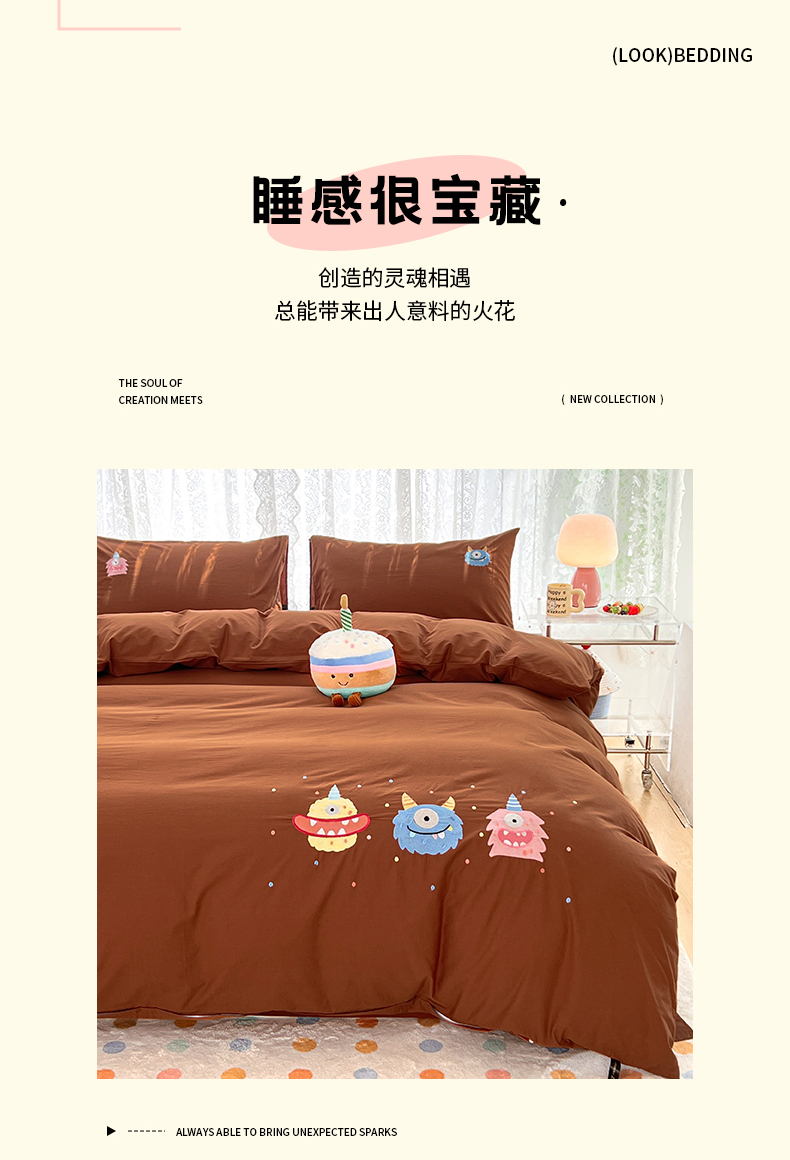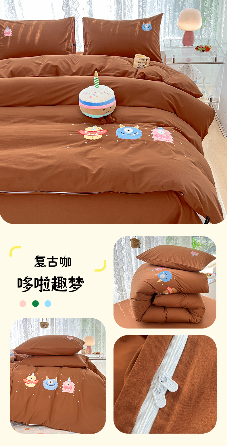 当前位置: 91家纺网 > 商品网购 > 床品套件 > 四件套 > 全棉普通四件套 > 曼町家居 2025春夏新款40支全棉纯棉水洗棉刺绣四件套 哆啦趣梦-复古咖