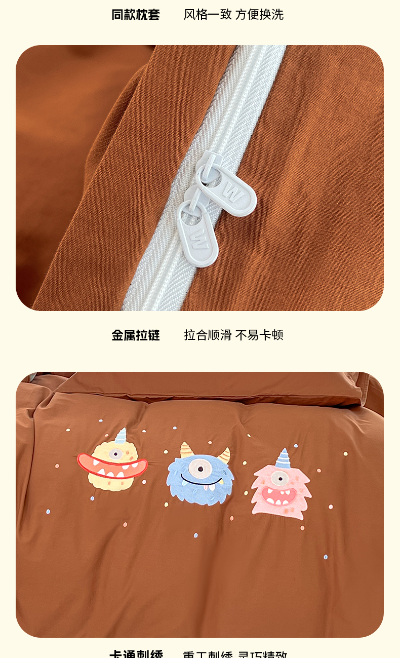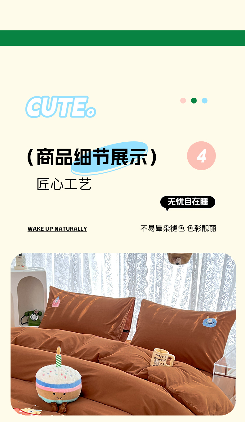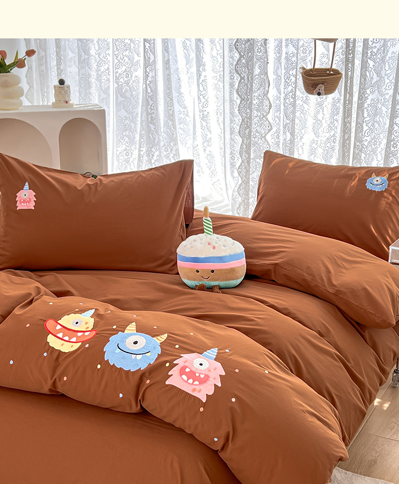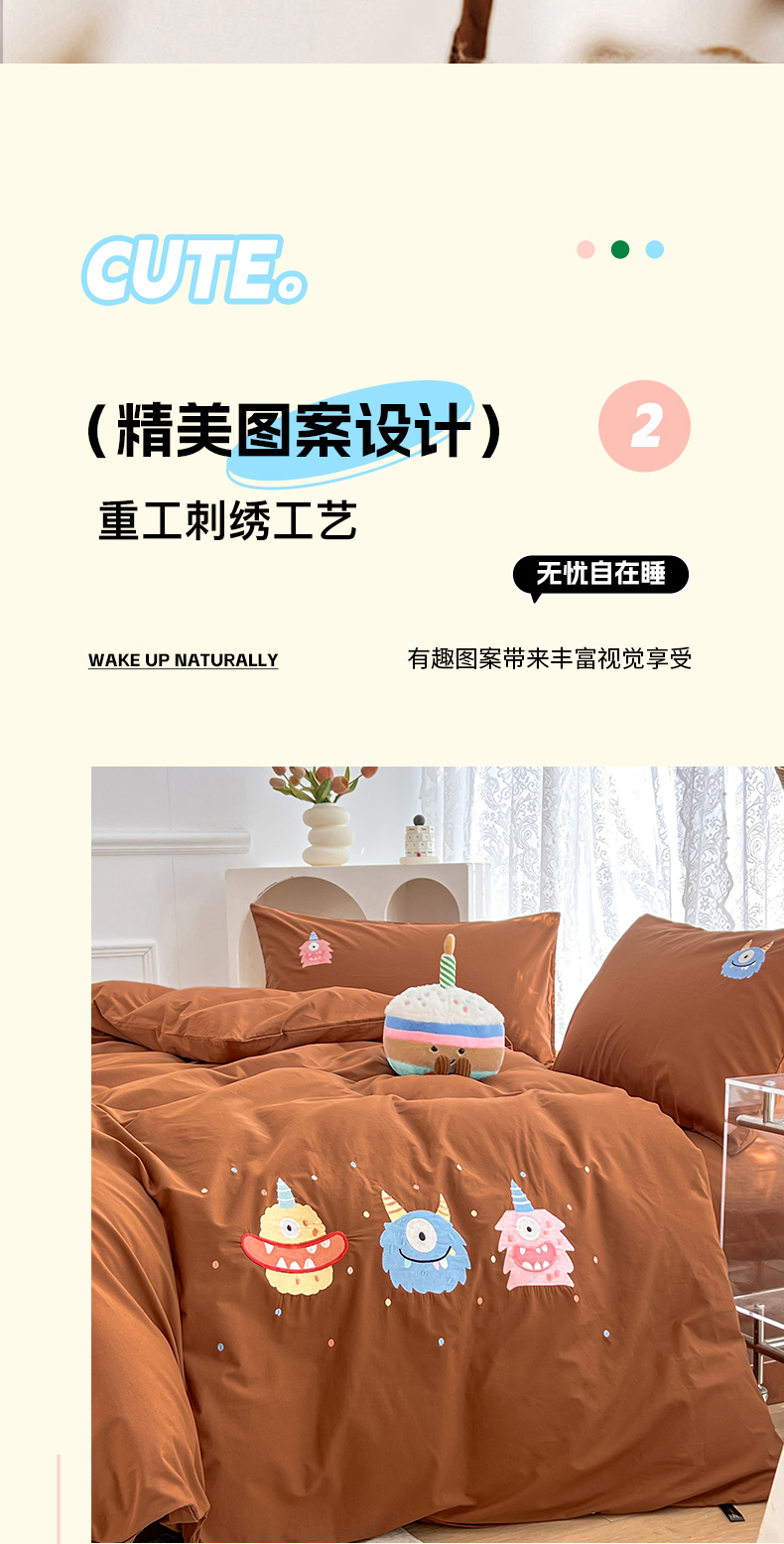 当前位置: 91家纺网 > 商品网购 > 床品套件 > 四件套 > 全棉普通四件套 > 曼町家居 2025春夏新款40支全棉纯棉水洗棉刺绣四件套 哆啦趣梦-复古咖