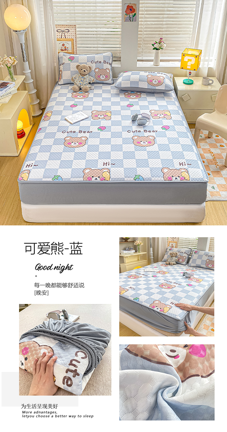 • 91家纺网 家纺一手货源 找家纺 慕梵家居 2025新款冰豆豆数码印花圆网凉席款凉席席子三件套 可爱熊-蓝